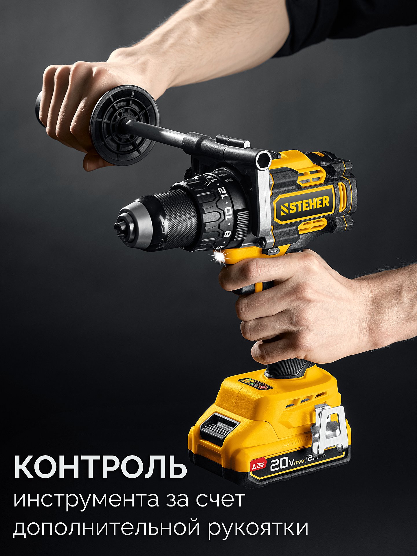 - Дополнительная рукоятка — уверенное удержание инструмента