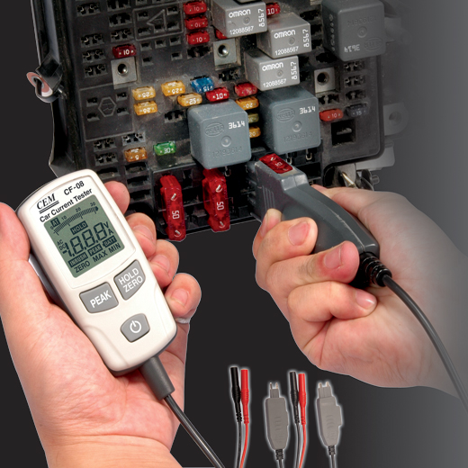 CF-08 – автомобильные токовые тестеры предназначены для измерения тока и напряжения в бортовой сети автомобиля. Приборы имеют удобные щупы для тестирования аккумулятора и предохранителей автомобиля.