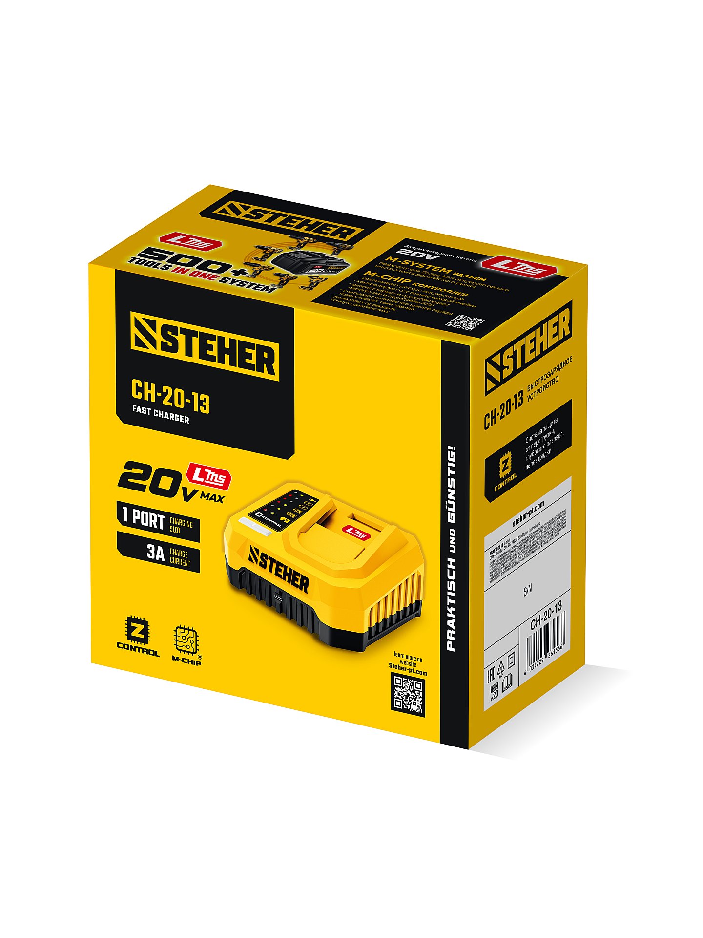 Зарядное устройство STEHER 20 В, 1 порт, 1 х 3 А, для LMS АКБ CH-20-13 - для зарядки батарей аккумуляторного инструмента.