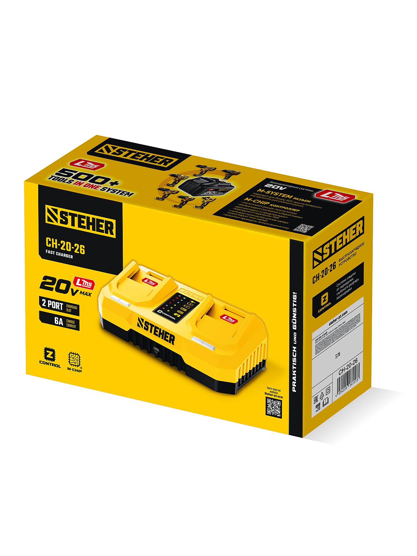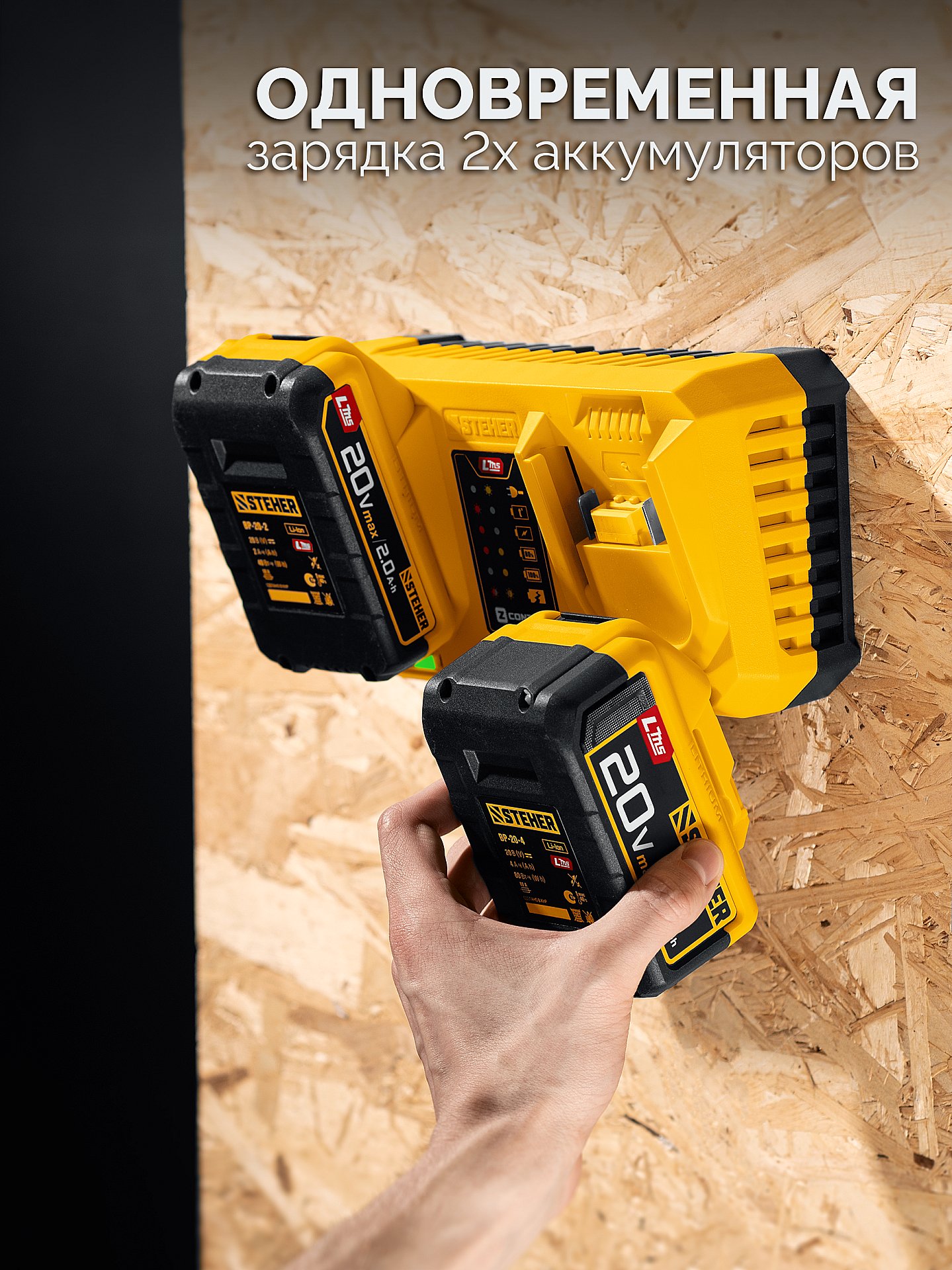 Зарядное устройство STEHER 20 В, 2 порта, 2 х 3 А, для LMS АКБ CH-20-26 - для зарядки батарей аккумуляторного инструмента.