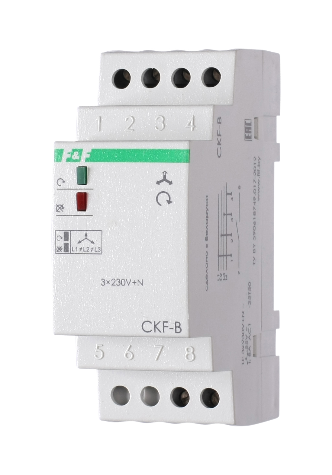 Особенности: контроль наличия фаз; контроль асимметрии между фазами; контроль чередования фаз; обрыв нулевого провода; напряжение питания 3x230+N В AC; контакт - 1NO (8 А).