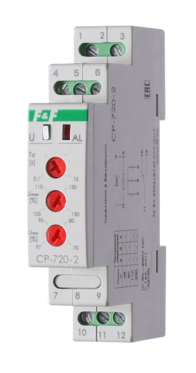 Монтаж на DIN-рейку. Предназначено для контроля величины напряжения постоянного тока источников питания, аккумуляторов, солнечных панелей, генераторов и др., выдачи сигнала управления в системах автоматики, защиты электрооборудования при выходе напряжения за установленные пределы.