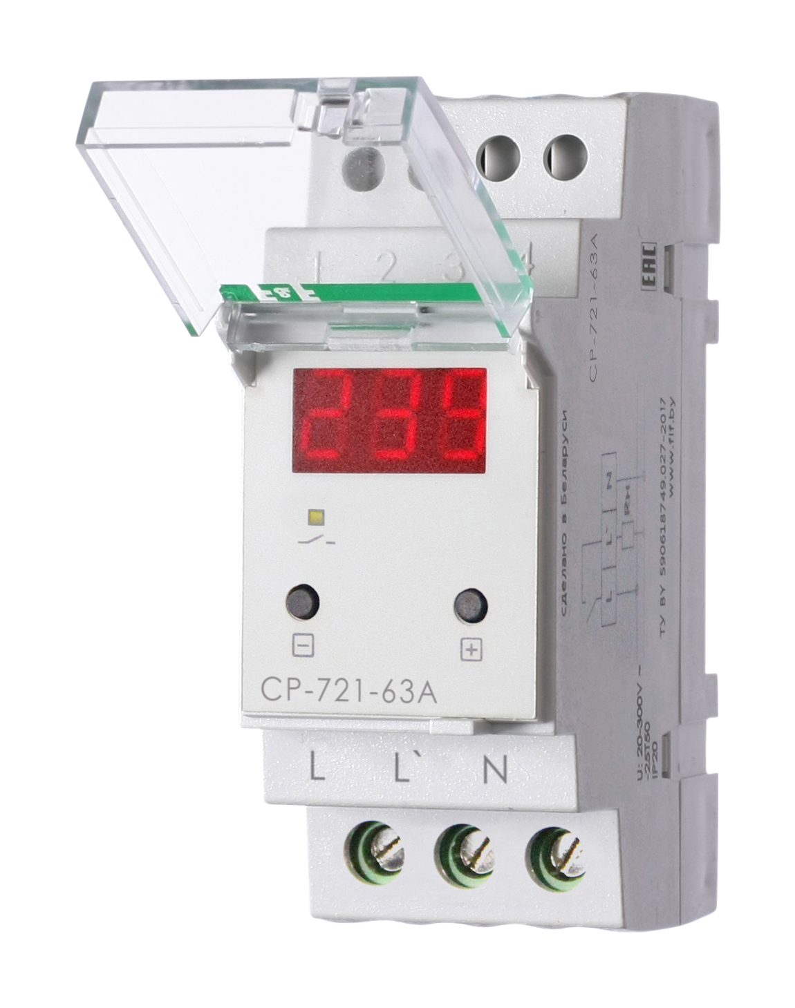 Реле контроля напряжения CP-721-63A (CP-721-1) предназначено для защиты электроустановок, электроприборов и прочего электронного оборудования от повышенного или пониженного напряжения, обрыва нулевого провода, регистрации предельных значений напряжения, а также типа произошедшей аварии, контроля величины напряжения в питающей однофазной сети переменного тока. Защита осуществляется путем отключения нагрузки от сети питания.