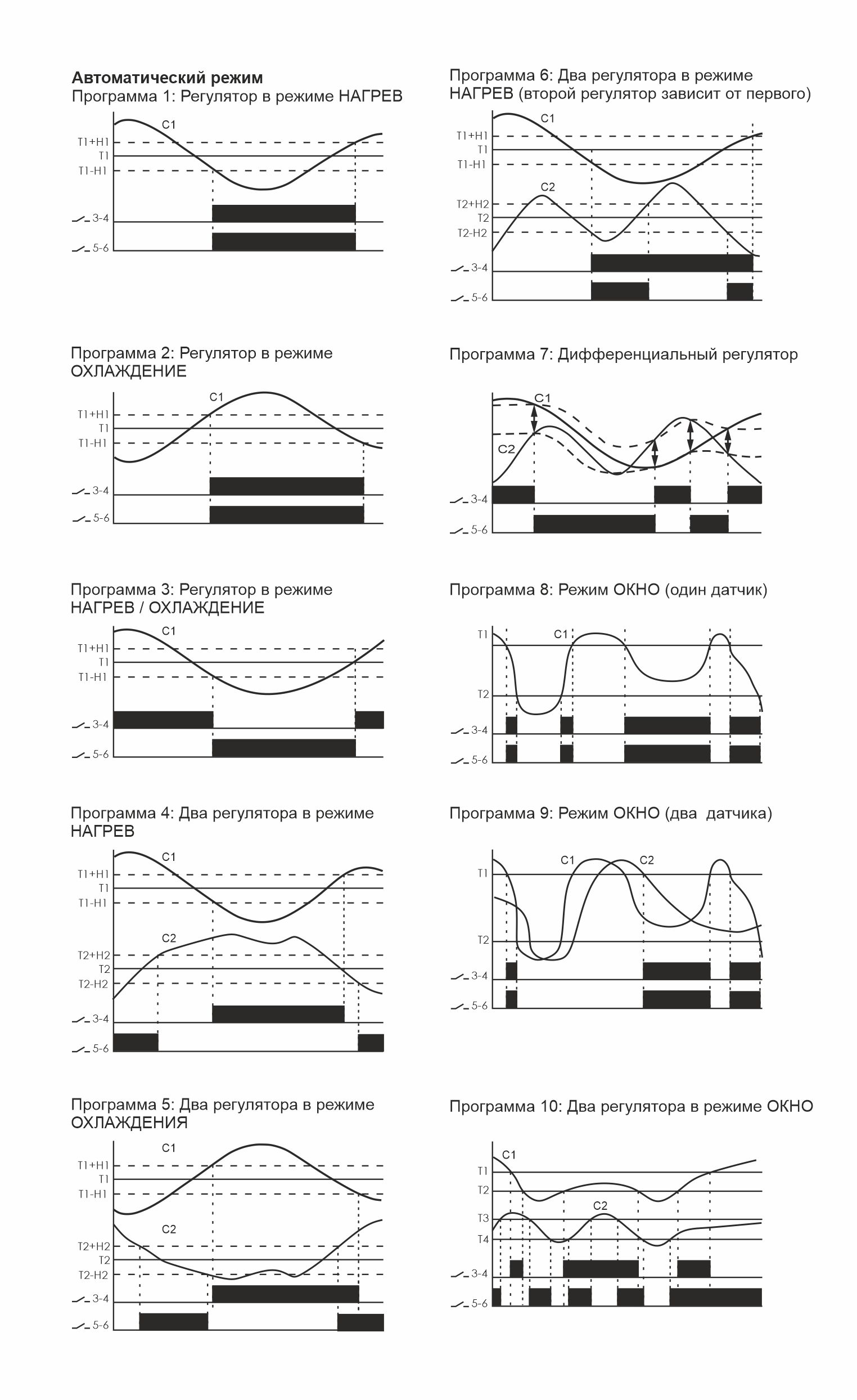 Особенности: двухканальный; многофункциональный; цифровая индикация; 10 режимов работы; установка двух независимых значений температуры; для каждого значения температуры можно установить отдельно величину гистерезиса; автоматический и ручной режим работы; корректировка показаний датчиков температуры; сигнализация аварийного режима работы на табло; блокировка доступа в меню с помощью пин-кода; включение режима подсветки на табло; память самой высокой и самой низкой зарегистрированной температуры (независимо для каждого канала); установка времени задержки ответа после прохождения через граничное значение температуры; включение режима подсветки дисплея; напряжение питания 230 В AC;