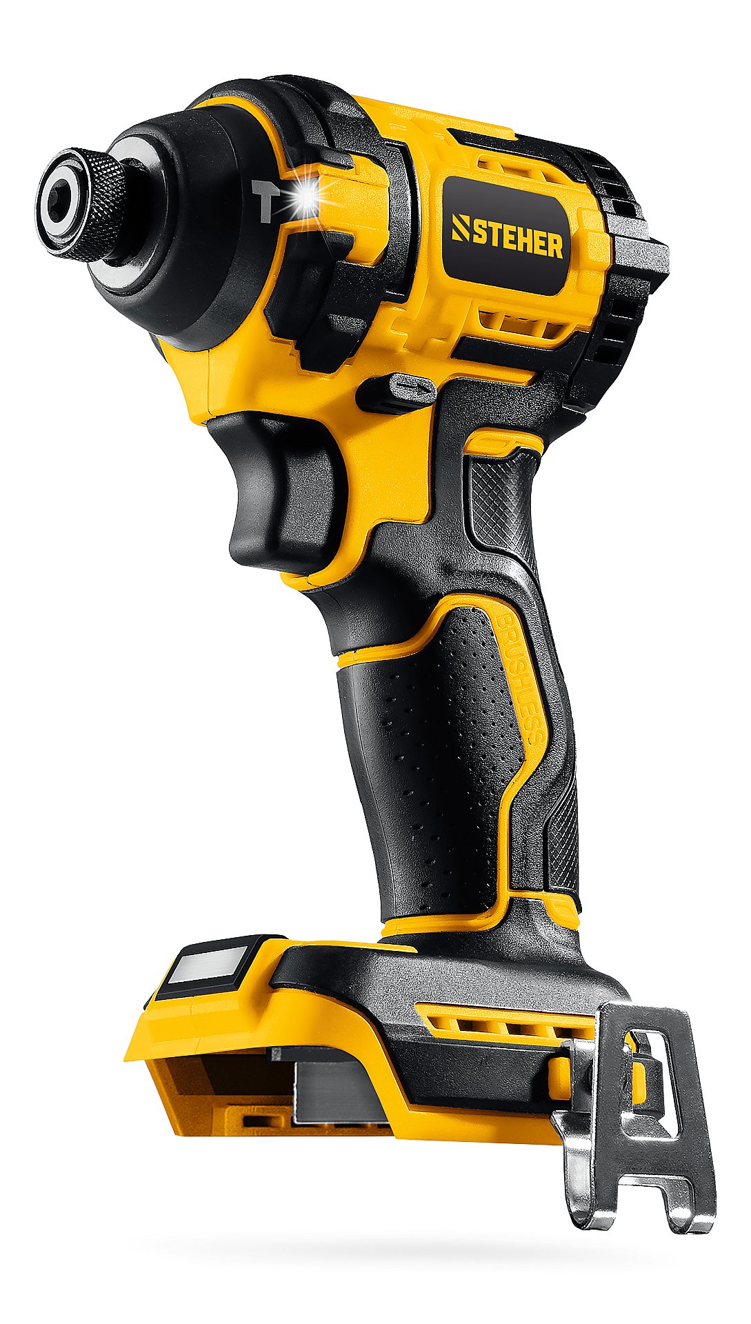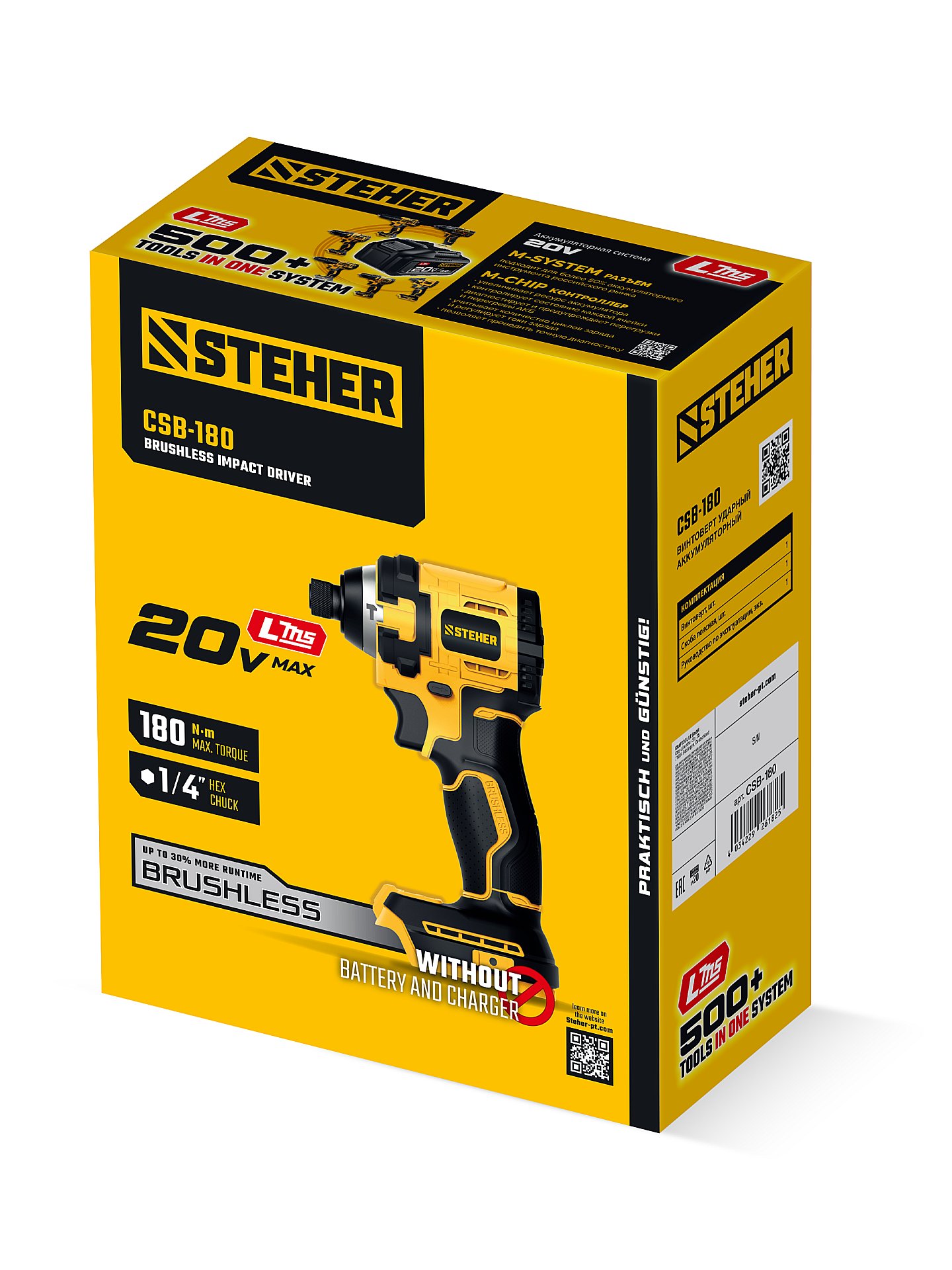 Бесщеточный ударный винтоверт STEHER CSB-180, 20 В, 180 Н·м, без АКБ (LMS) — предназначен для заворачивания и отворачивания крепежа при сборке и разборке металлических конструкций, снятии и установке колес автомобиля и т.д.