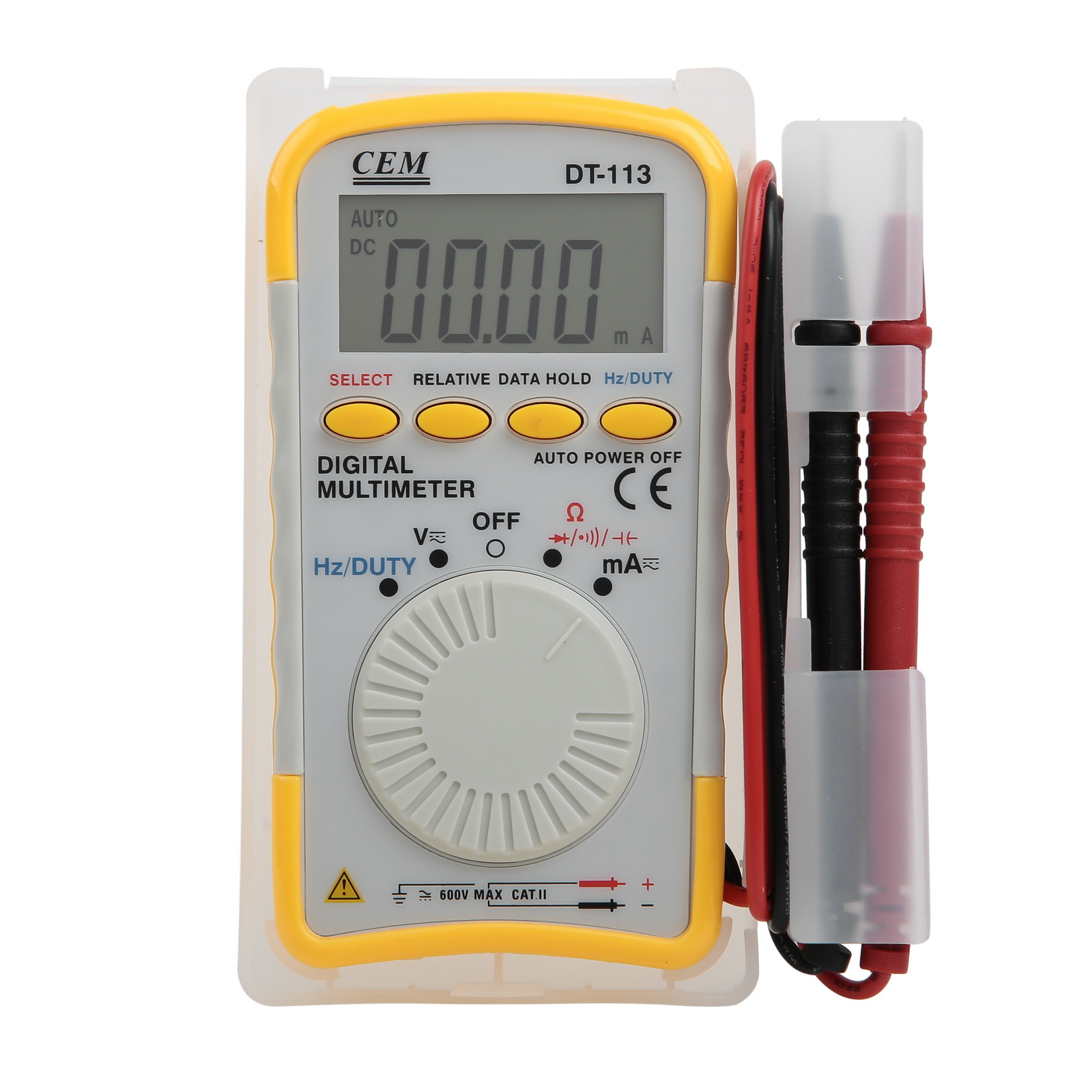 DT-111/112/113 серия цифровых мультиметров с ЖК-экраном, с возможностью измерения пяти функций: DCV, ACV, сопротивления короткого замыкания и тест диодов.