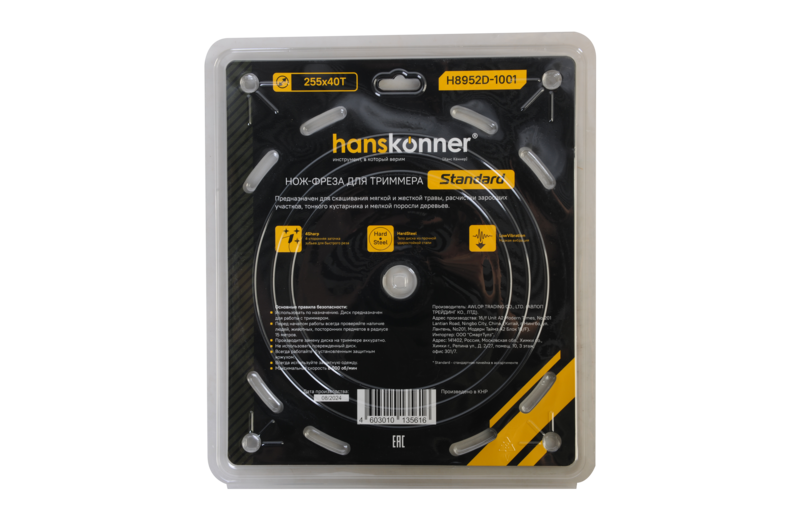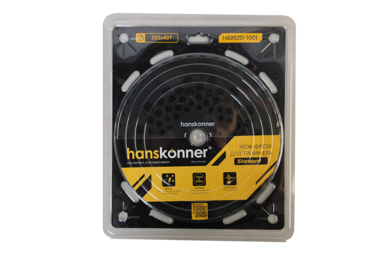 Фреза для бензотрим., Standard 255мм x 25,4x40, с тверд. напайк., Hanskonner H8952D-1001 - предназначен для скашивания мягкой и жесткой травы, расчистки заросших участков, тонкого кустарника и мелкой поросли деревьев с помощью триммера.