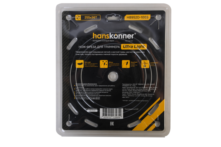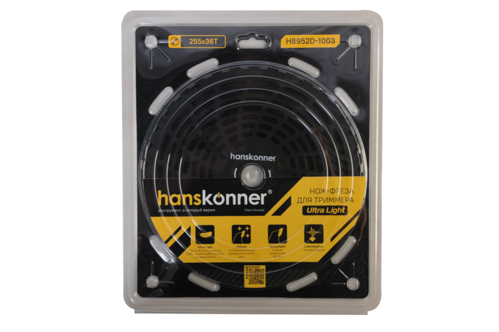 Фреза для бензотрим., Ultra Light 255мм x 25,4x36, с тверд. напайк., Hanskonner H8952D-1003 - предназначен для скашивания мягкой и жесткой травы, расчистки заросших участков, тонкого кустарника и мелкой поросли деревьев с помощью триммера.