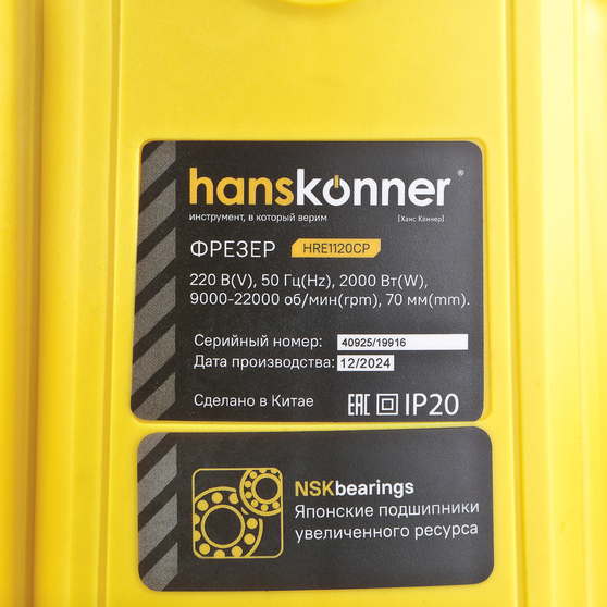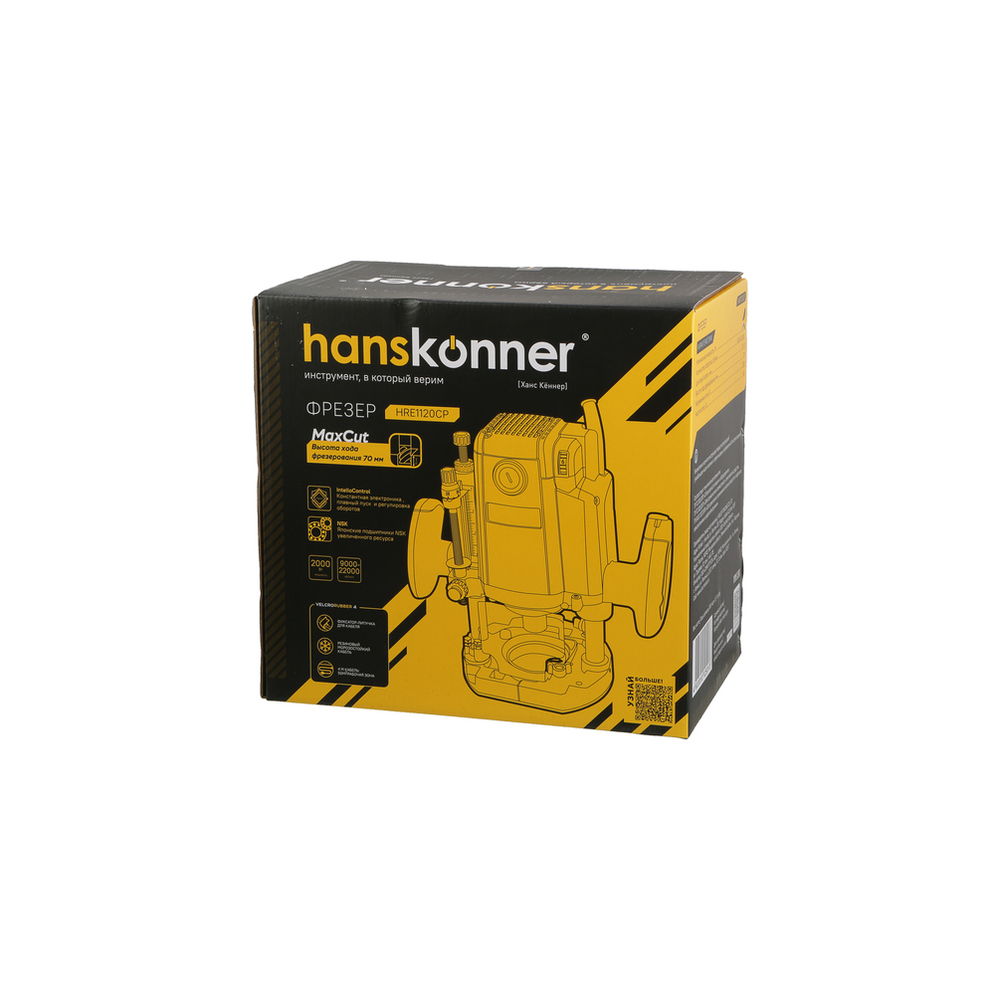 Фрезер Hanskonner PLATINUM HRE1120CP с константной электроникой - высокоэффективный инструмент, рассчитан на интенсивную эксплуатацию в условиях профессиональных работ по обработке древесины.