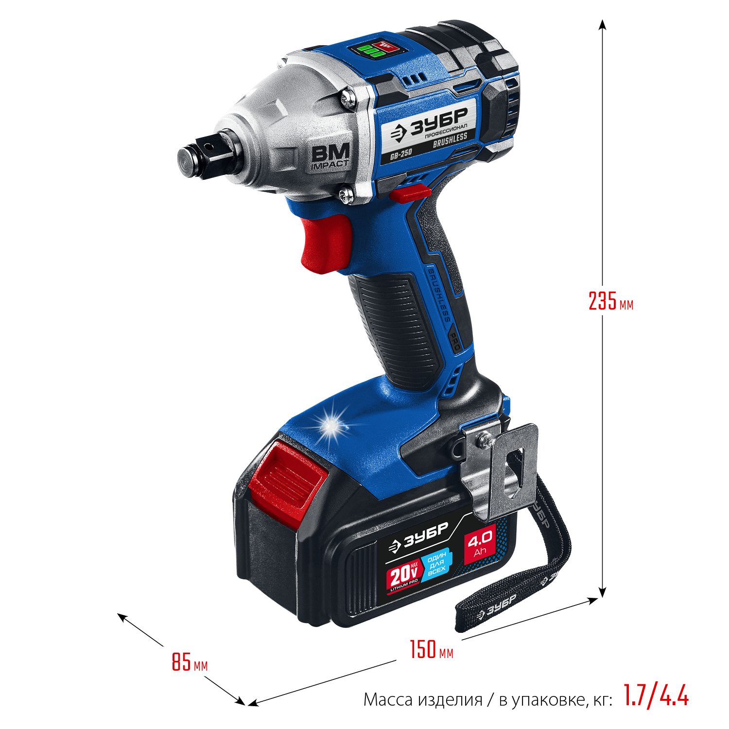Гайковерт Зубр GB-250-42, предназначен для заворачивания/отворачивания крепежа (при сборке/разборке металлических конструкций, снятии/установке колес автомобиля и т.д.) Ударная функция позволяет заворачивать крепеж большого диаметра и отворачивать приржавевшие метизы.