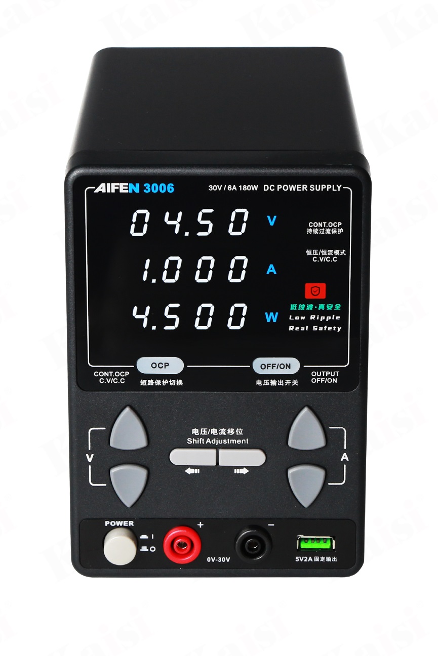 Источник питания постоянного тока AIFEN 3006 — универсальный импульсный блок питания для лабораторных, сервисных и радиолюбительских задач. Модель обеспечивает стабильное регулируемое напряжение до 30 В и ток до 6 А при максимальной мощности 180 Вт.
