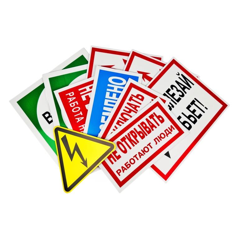 Знаки электробезопасности используются как правило в электроустановках до и выше 1000 В электростанций и подстанций. Изготавливаются путем печати либо на пластике, либо на пленке в зависимости от того, где будут использоваться. Все знаки электробезоп продукция на пластике является переносной и ламинируются, что позволяет использовать их не только в помещении, но и на улице.