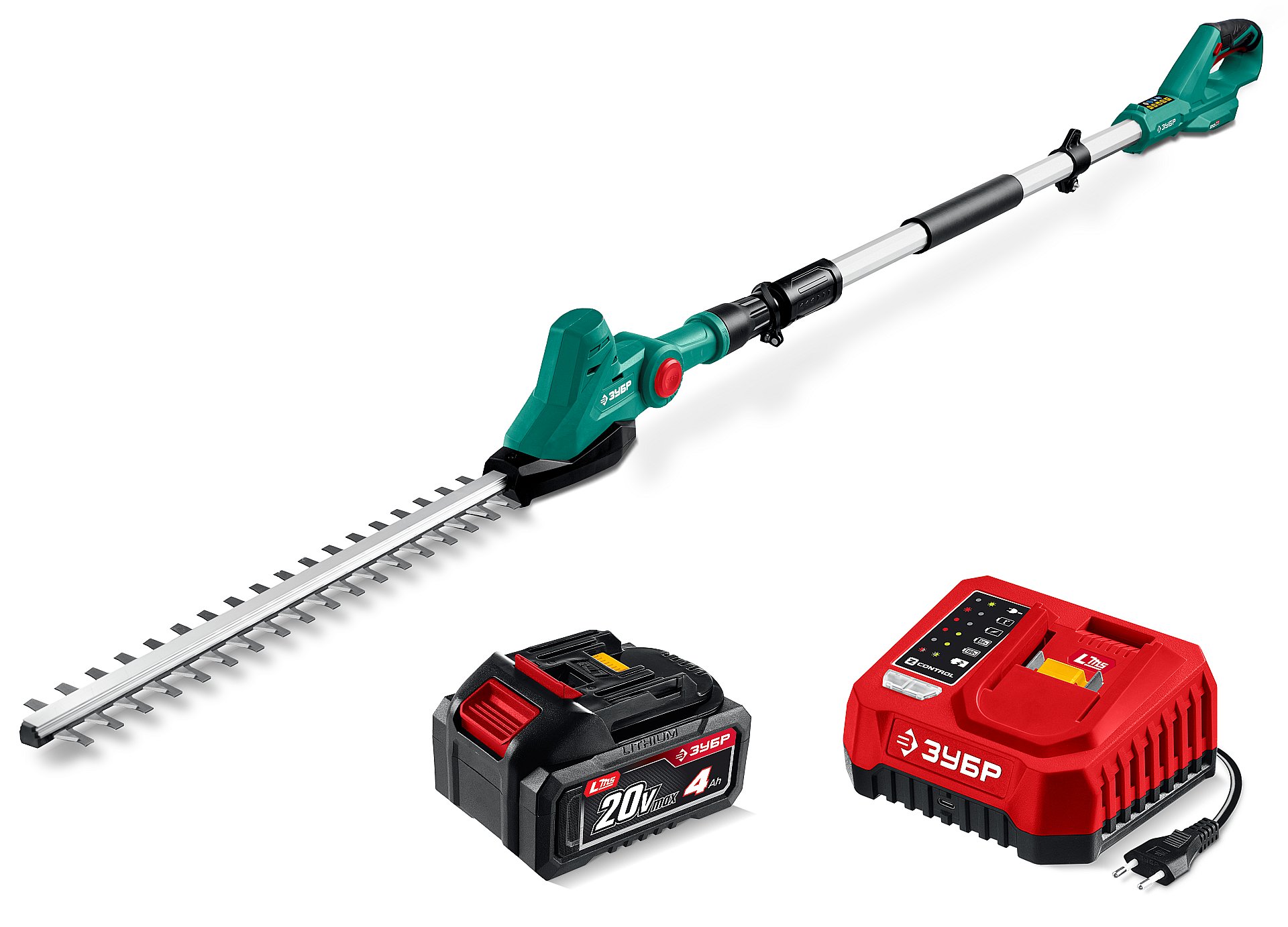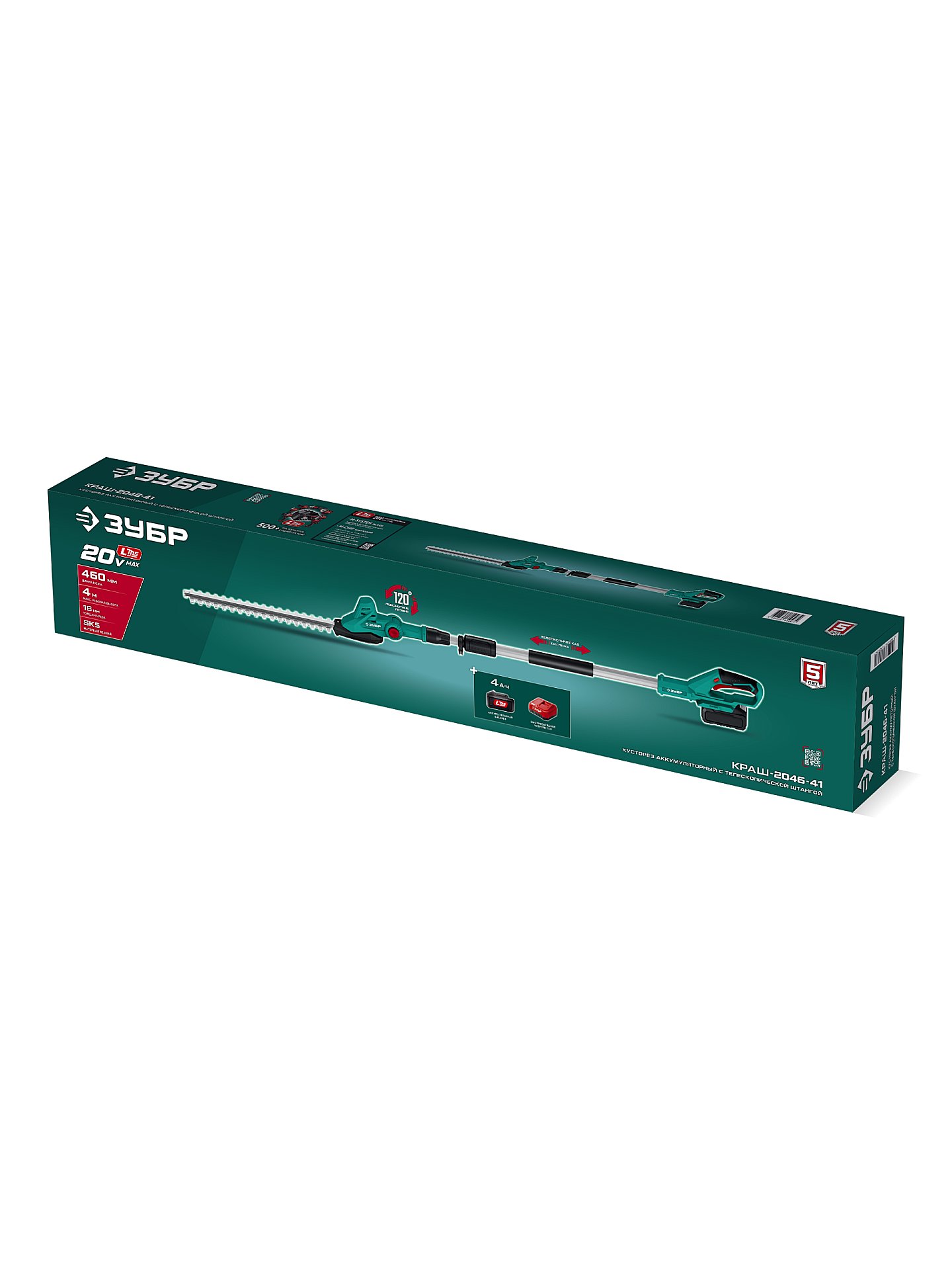 Кусторез аккумуляторный со штангой ЗУБР 20 В, 460 мм, 1 АКБ LMS (4 Ач) КРАШ-2046-41 - предназначен для формирования живых изгородей, ухода за кустарниками и деревьями высотой до 4 м.