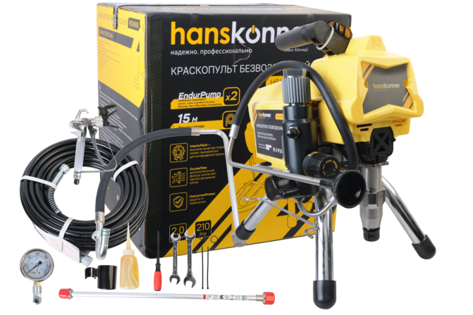 Краскопульт электрический безвоздушный Hanskonner PLATINUM HSG9663B — мощный и надежный инструмент для нанесения лакокрасочных материалов без применения сжатого воздуха.