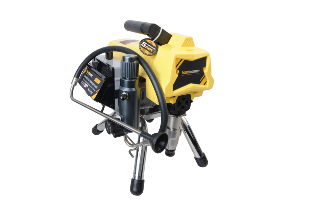 Краскопульт электрический безвоздушный Hanskonner PLATINUM HSG9665V — предназначен для нанесения лакокрасочных материалов без использования сжатого воздуха и отлично подойдет для работы как с густыми, так и жидкими красками, грунтовками и другими составами.