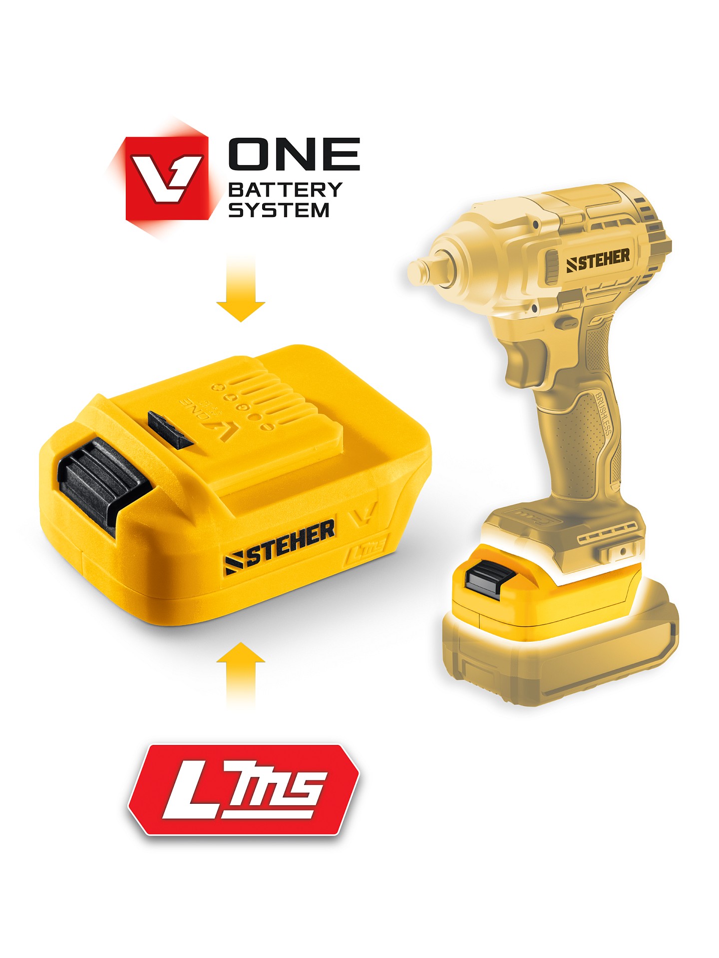 Адаптер для АКБ LMS под инструмент V1 STEHER 20 В LMS-V1 - обеспечивает возможность использования батарей LMS на инструменте V1, гарантирует совместимость всех рабочих протоколов и систем защиты.