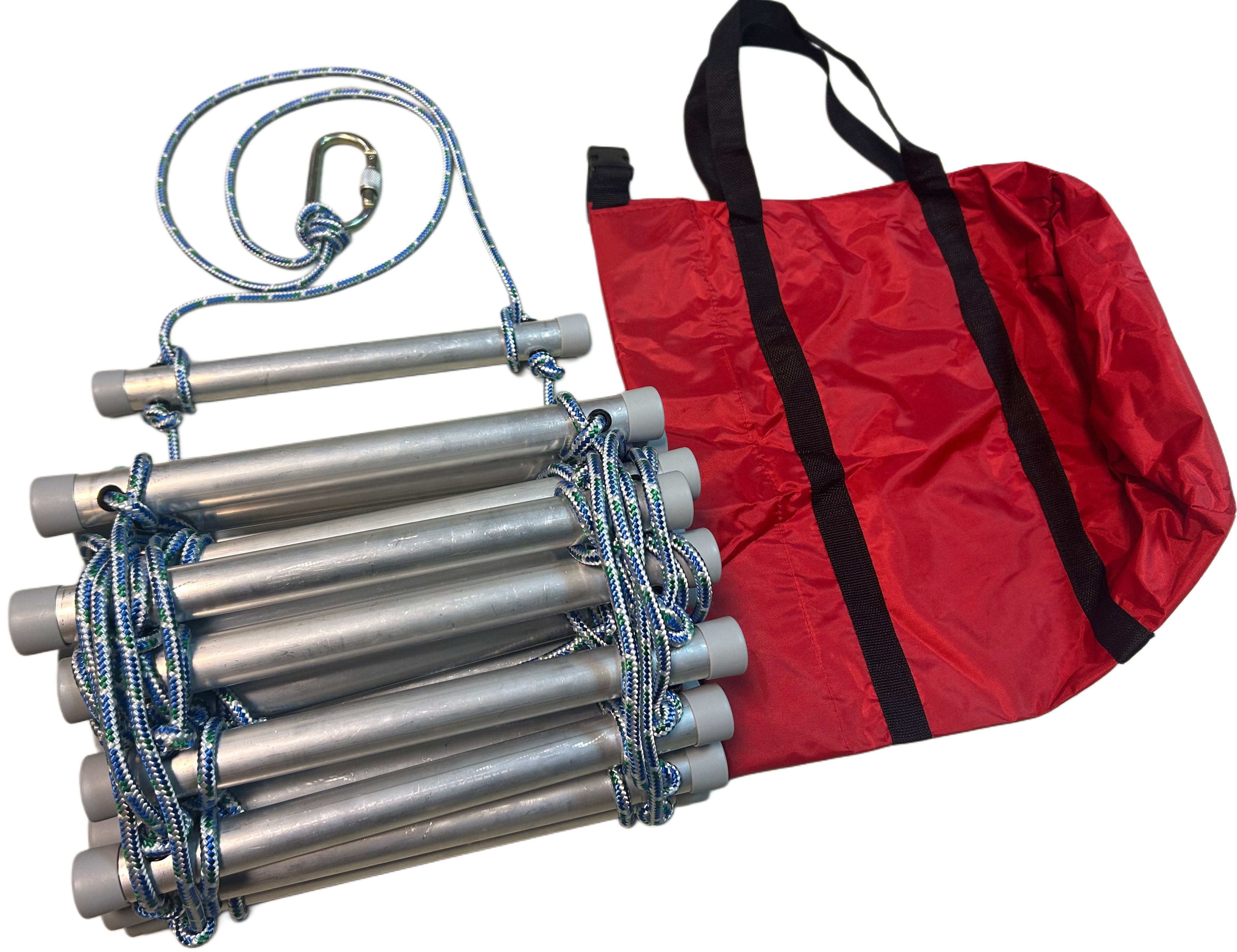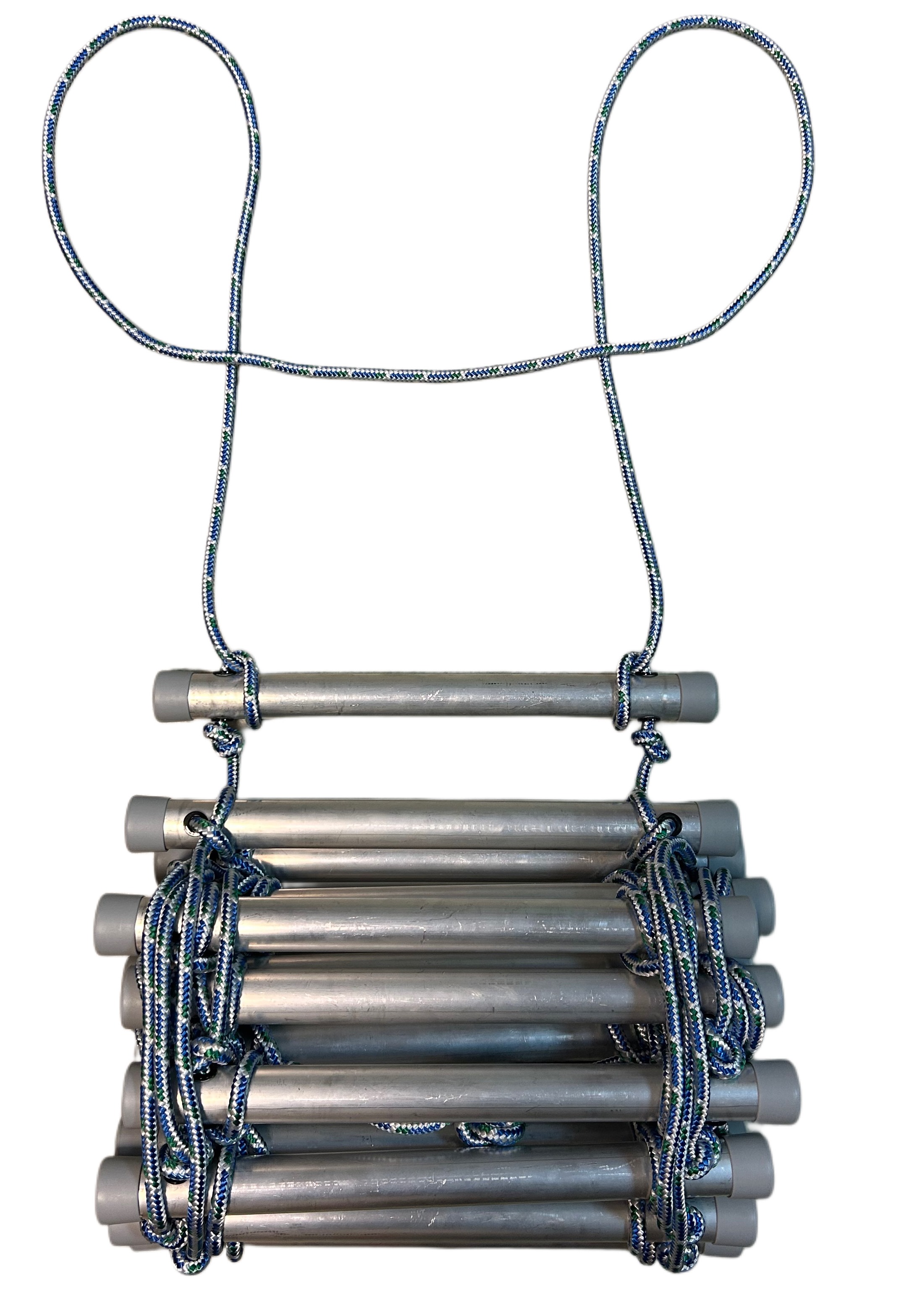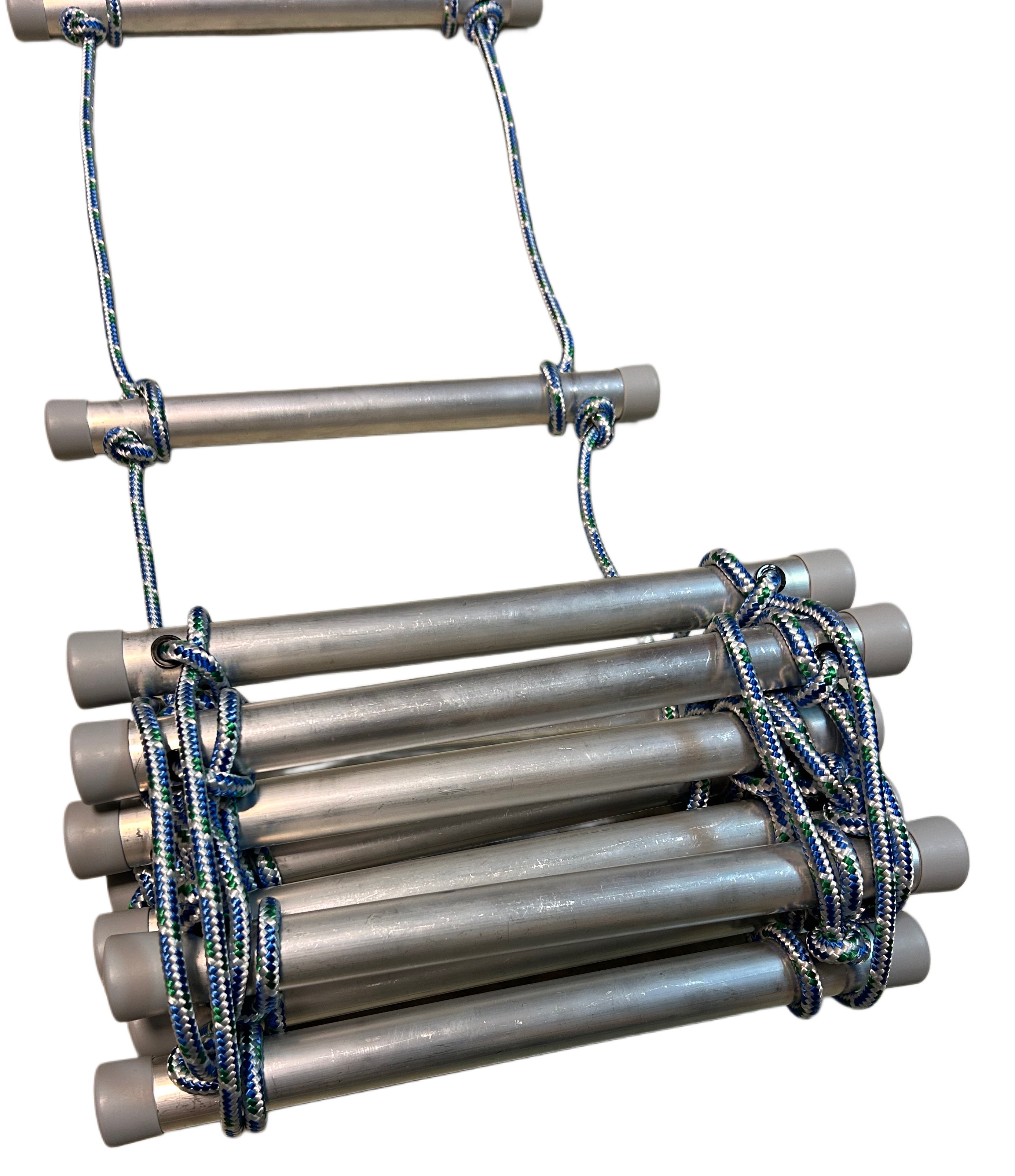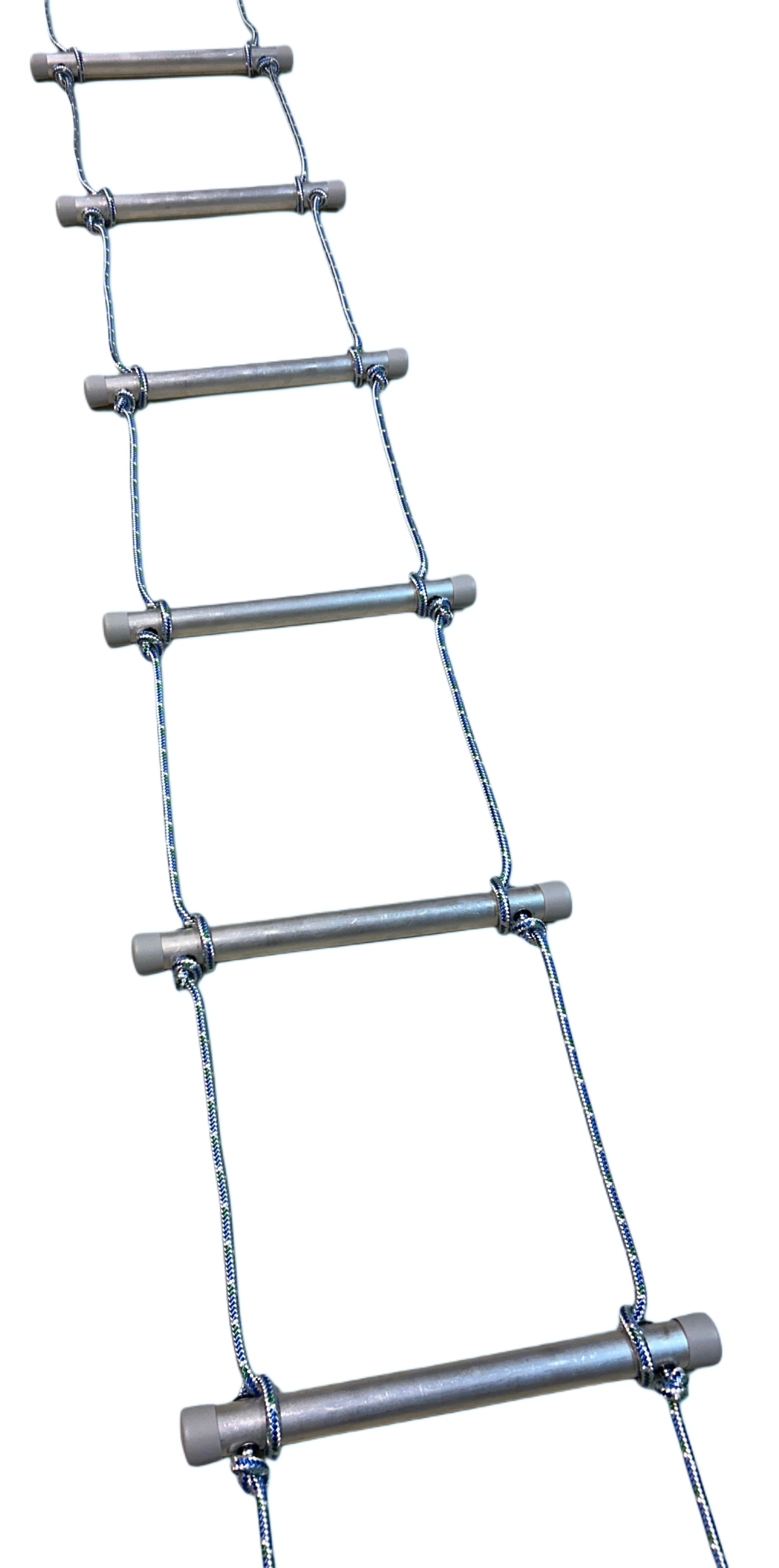 - лестница из полиэфирного каната и металлических (алюминиевых) перекладин со специальными вставками, предотвращающими перетирание каната об края отверстий,