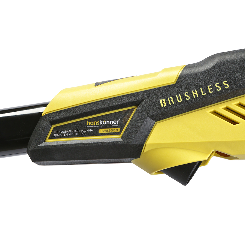 Шлифовальная машина для стен и потолка Hanskonner HDWS6080BL — удобный электроинструмент для сухого шлифования штукатурки, гипсокартона и тому подобных материалов. Данная модель оснащена константной электроникой, которая повышает мощность при увеличении нагрузки, чем способствует продуктивной работе, и функцией плавного пуска что предотвращает избыточный износ. Вместе с тем надежный бесщеточный двигатель содействует росту как производительности, так и рабочего ресурса.