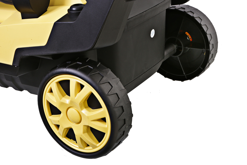 В конструкции мойки предусмотрено 4 колеса: 2 основных для перемещения в вертикальном положении за ручку и 2 дополнительных поворотных для перемещения в горизонтальном положении за шланг в след за пользователем.