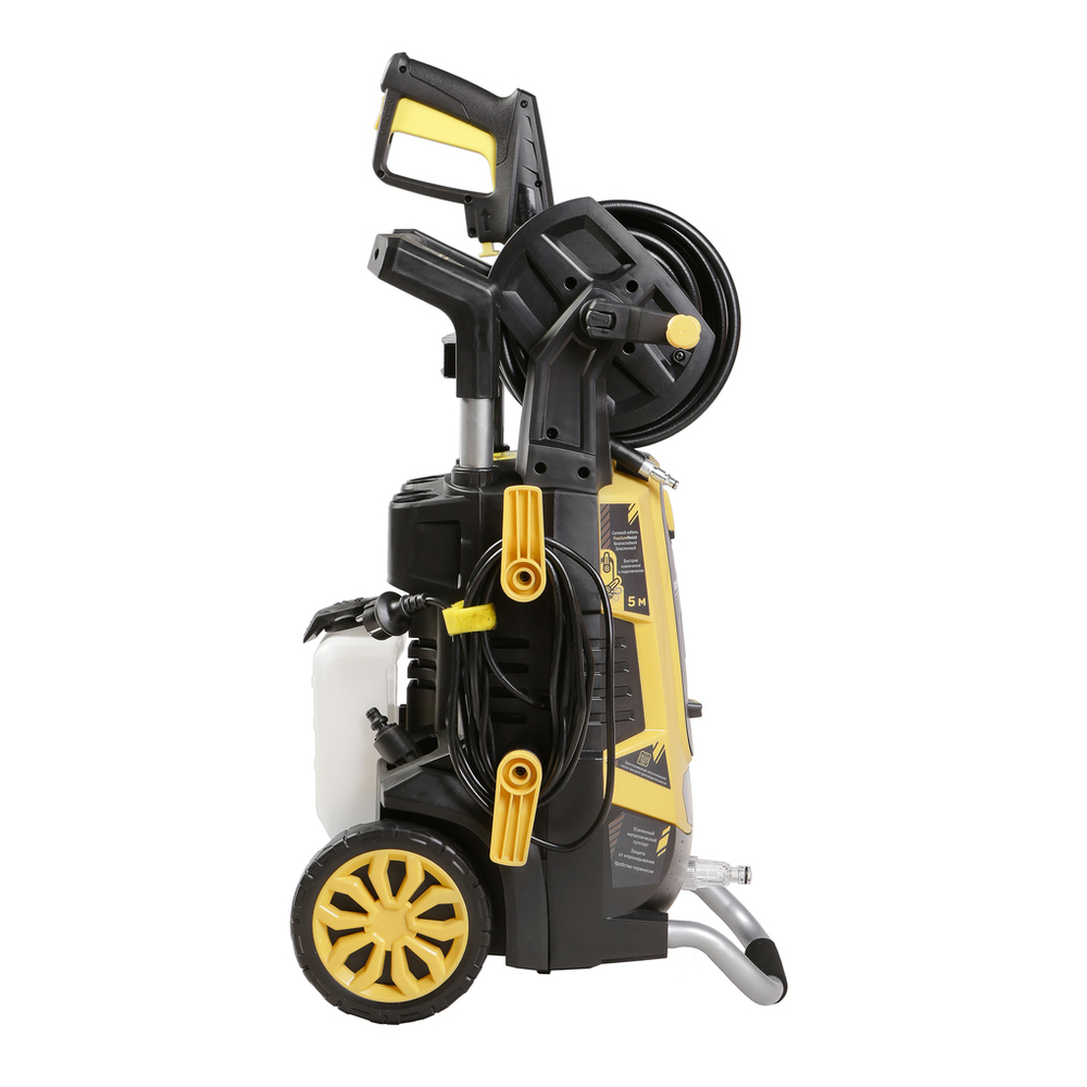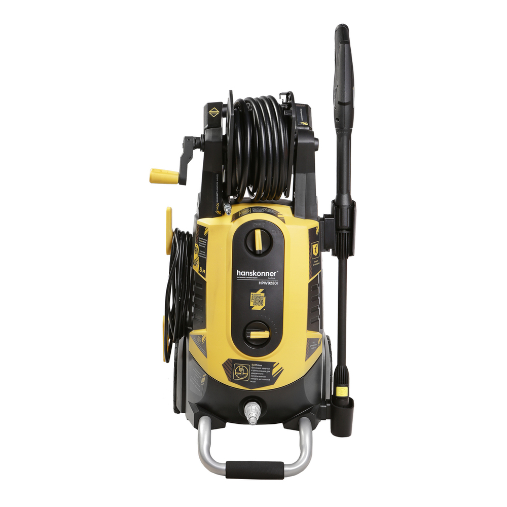 Hanskonner HPW9230I – универсальная производительная мойка высокого давления. Объединяет в себе компактность, отличную эргономику и широкие функциональные возможности. Главная особенность модели – наличие мощного индукционного бесщеточного двигателя, в сравнении с коллекторными аналогами обладающего лучшей износостойкостью и долговечностью, а также характеризующимся низким уровнем шума. Встроенная термозащита и автоматическая система с микровыключателем мгновенной остановки двигателя Total Stop гарантируют безопасную и энергосберегающую работу. Применение в конструкции трёхплунжерной алюминиевой помпы 3D Pump, позволяет мойке демонстрировать высокие показатели производительности (до 450 л/час), и одни из лучших, среди моек аналогичной мощности, показатели по выходному давлению (максимальное давление – 195 бар / рабочее давление – 130 бар) – все это дает возможность с максимальной эффективностью удалять даже самый стойкие загрязнения. Мойка оснащена функцией закачки и фильтрации воды &quotSelfPrime&quot, обеспечивающей полноценную эксплуатацию устройства даже при отсутствии условий для подключения к стационарному водопроводу – в качестве источника воды можно использовать как водоемы, так и любые подручные емкости. Установленные на модели десятиметровый шланг высокого давления и пятиметровый сетевой кабель гарантируют значительную по площади рабочую зону: позволяют свободно мыть легковой автомобиль, очищать крыши дачных построек и другие объекты без необходимости передвигать мойку с места на место. Для защиты шланга от нежелательных перегибов модель имеет штатную катушку для его намотки, а также оснащена системой &quotTurnUnwind&quot для удобства хранения и возможности быстрого разматывания сетевого кабеля. Легкости подключения шланга и оснастки способствуют специальные быстросъемные соединения QuickConnect. Дополнительную функциональность обеспечивает установленный в задней части корпуса бачок для моющего средства с регулировкой подачи, благодаря которому пользователь получает возможность предварительной обработки моющим составом загрязненной области, не прибегая к использованию дополнительного оборудования. В штатную комплектацию мойки также включены внешний пеногенератор, для создания качественной густой пены, дополнительная роторная фреза &quotTurboNozzle&quot для работы с сильными загрязнениями, а также специальная защита от опрокидывания, предотвращающая случайное повреждение мойки в ходе использования. Благодаря большим транспортировочным колесам и выдвижной телескопической рукояти модель максимально удобна в транспортировке.