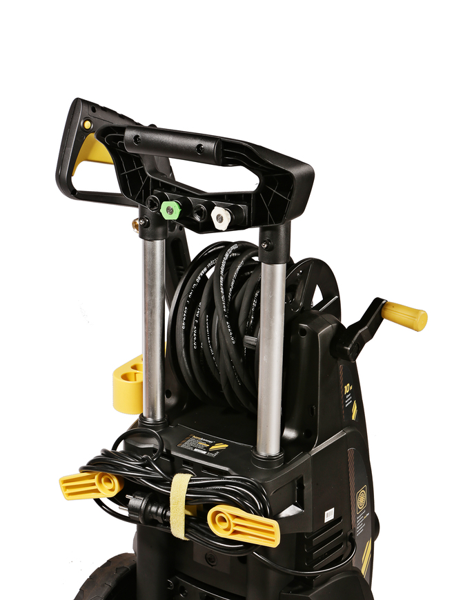 Мойка оснащена функцией закачки и фильтрации воды &quotSelfPrime&quot, обеспечивающей полноценную эксплуатацию устройства даже при отсутствии условий для подключения к стационарному водопроводу – в качестве источника воды можно использовать как водоемы, так и любые подручные емкости. Установленные на модели десятиметровый шланг высокого давления и семиметровый сетевой кабель гарантируют значительную по площади рабочую зону: 907м2.
