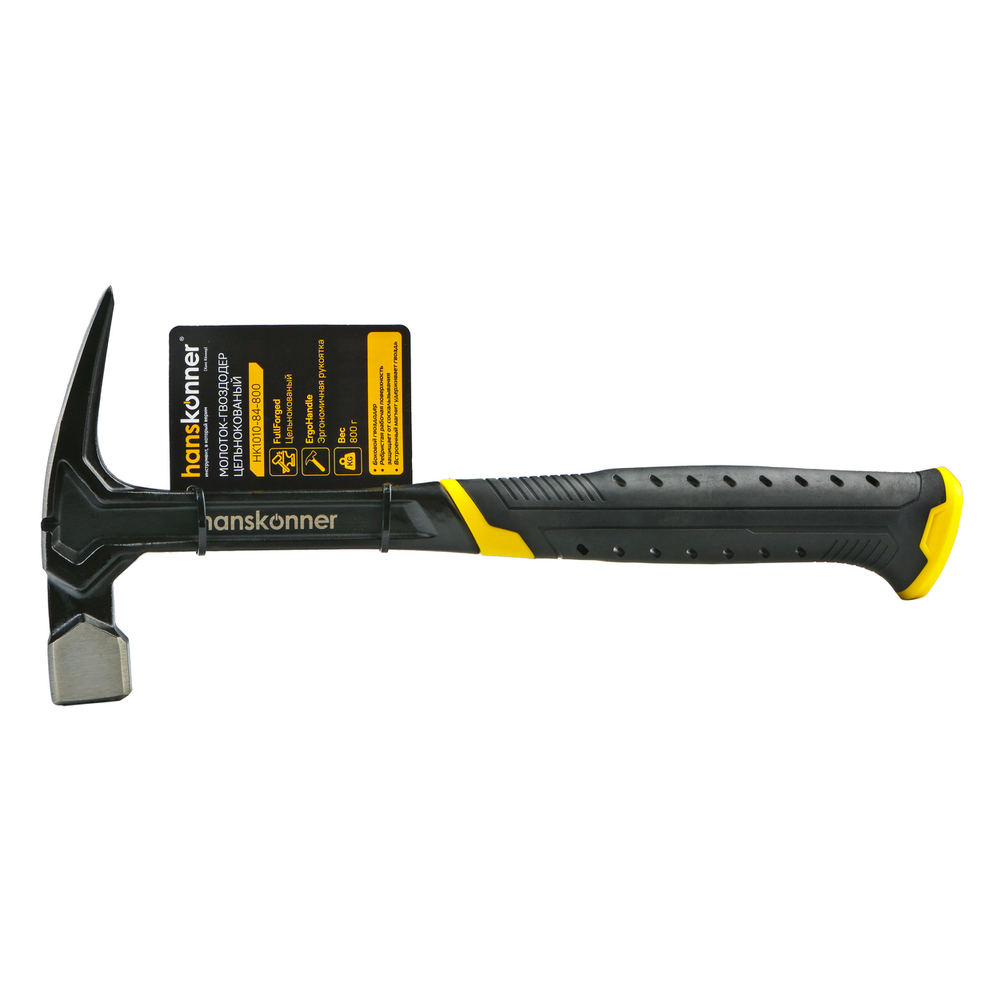 Молоток-гвоздодер, 800г, цельнокованый, Hanskonner HK1010-84-800 — предназначен для забивания и извлечения гвоздей.
