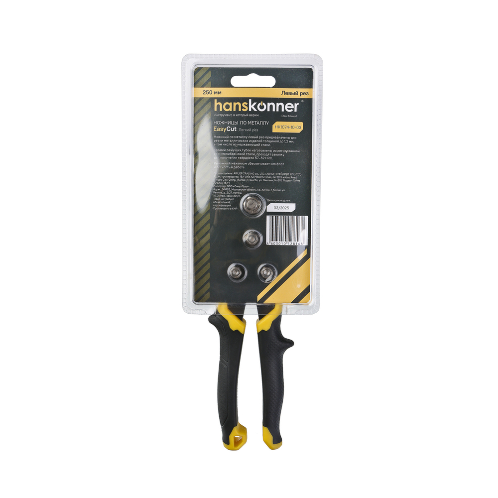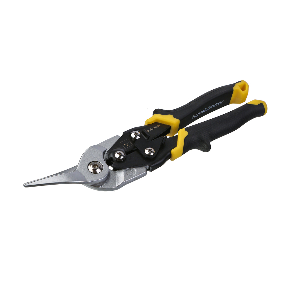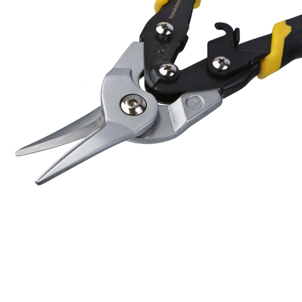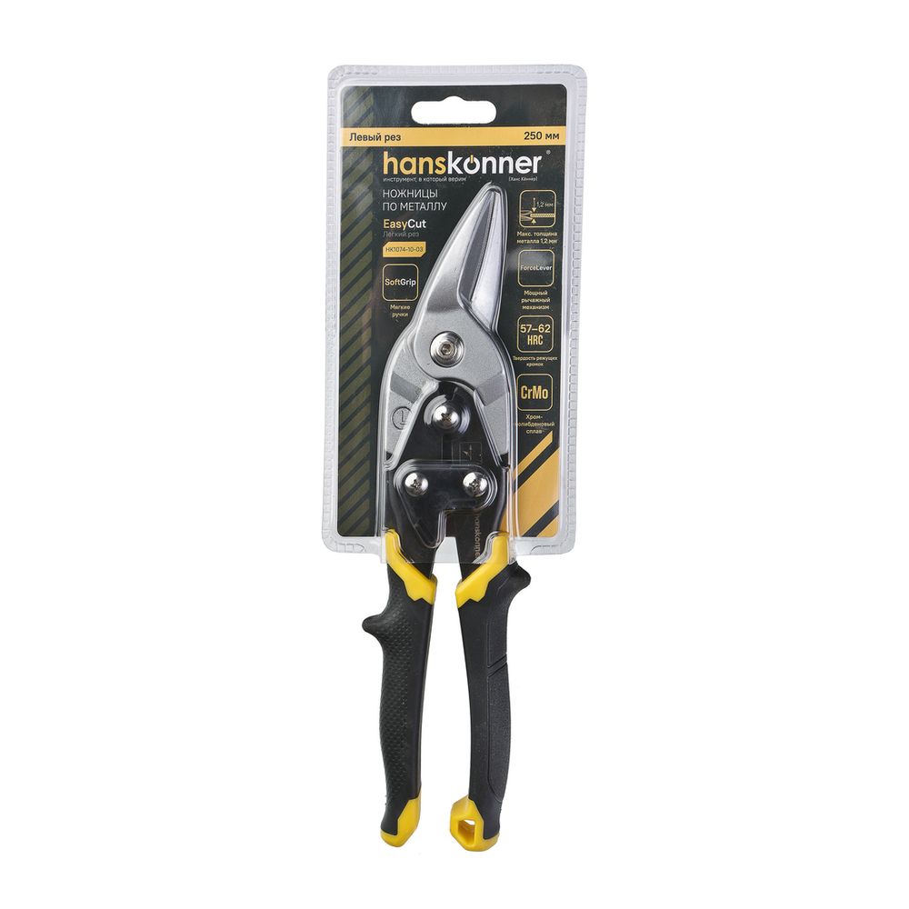 Ножницы по металлу, 250 мм, левый рез, СrMo, Hanskonner HK1074-10-03 — резка листового металла, профнастила, жести; работа с сеткой, проволокой; фигурная резка и создание отверстий.