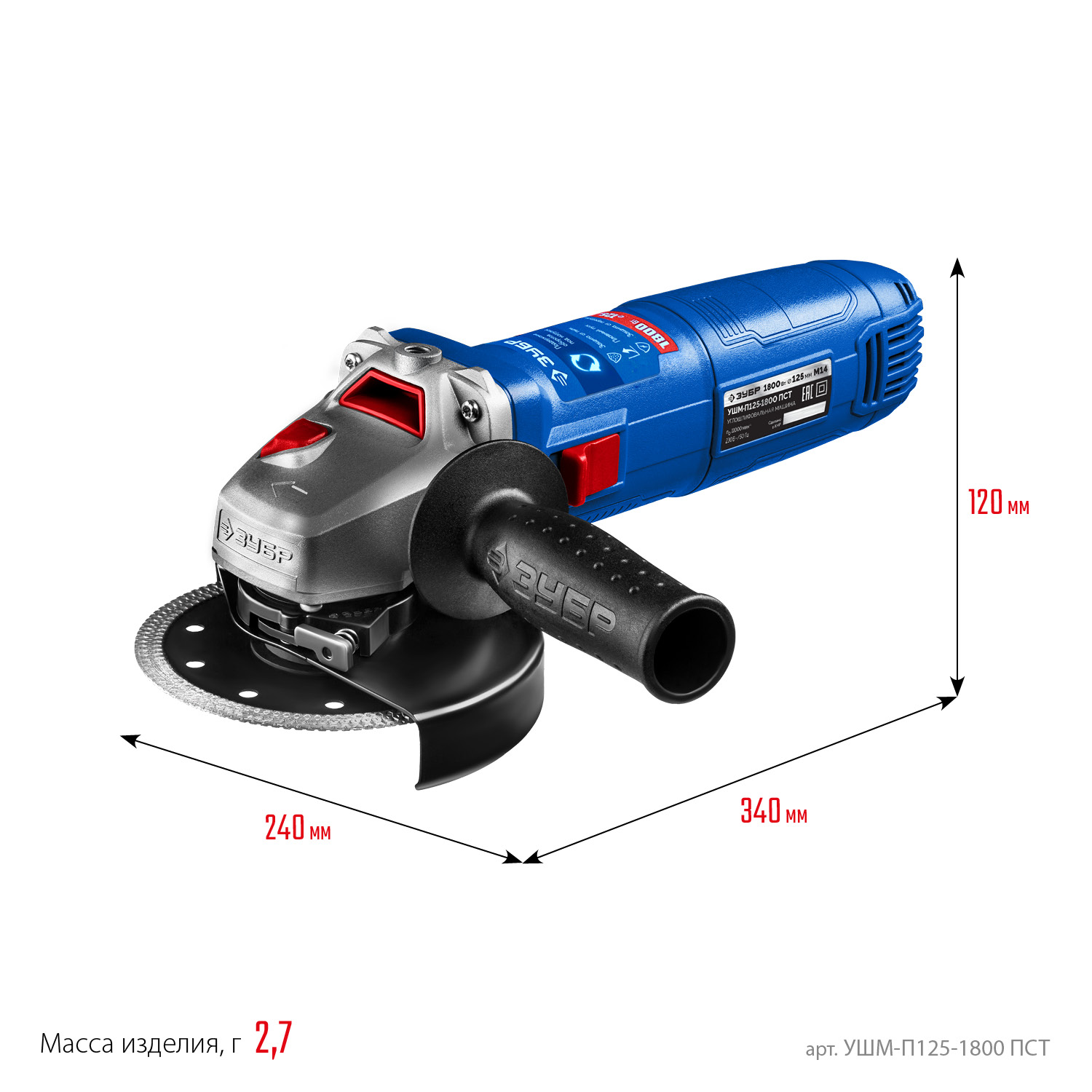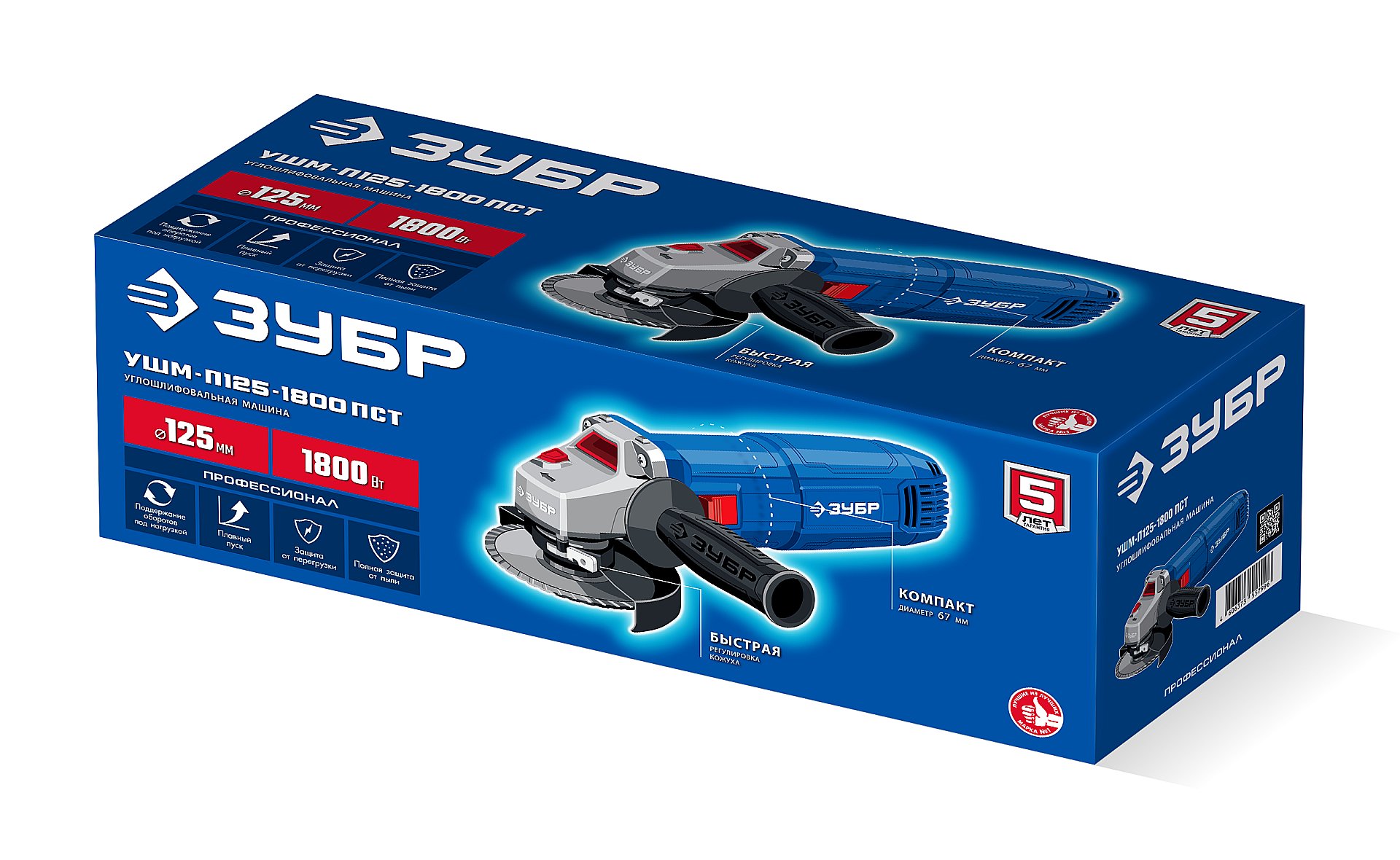 Одноручная УШМ с максимальной мощностью 1800 Вт среди одноручных машин ЗУБР с набором электронных систем максимально эффективна для всех видов работ - резки металла, кирпича, керамики, зачистки, шлифовки и обдирки. Удобная эргономика (малый диаметр корпуса под хват, быстрая регулировка кожуха), а также низкие уровень шума и вибрации делают высокопроизводительную работу комфортной