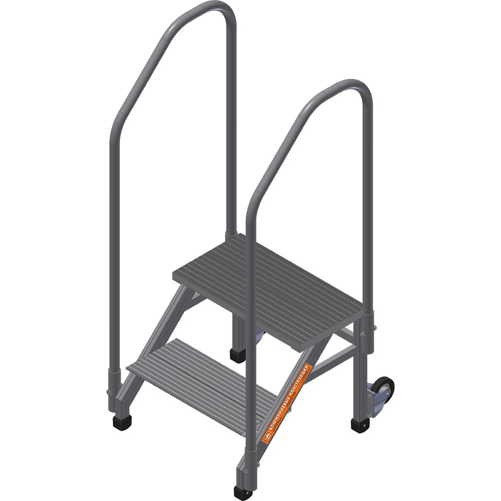 Подмости (подставки) алюминиевые ПА-2 (45-2ПКМ2) (H=0,5 м) с 2 поручнями и колёсами (Алюминиевые конструкции) — предназначены для создания рабочего места на высоте.