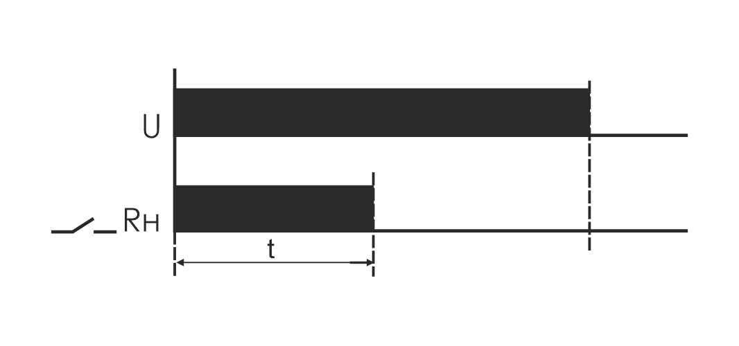 Принцип работы: При включении питания включается реле, замыкаются контакты 8-9, 11-12. После отсчёта установленной выдержки времени контакты реле возвращаются в положение 8-7, 11-10 и в таком положении остаются до отключения питания. Для повтора цикла работы необходимо отключение напряжения питания и подача его повторно.