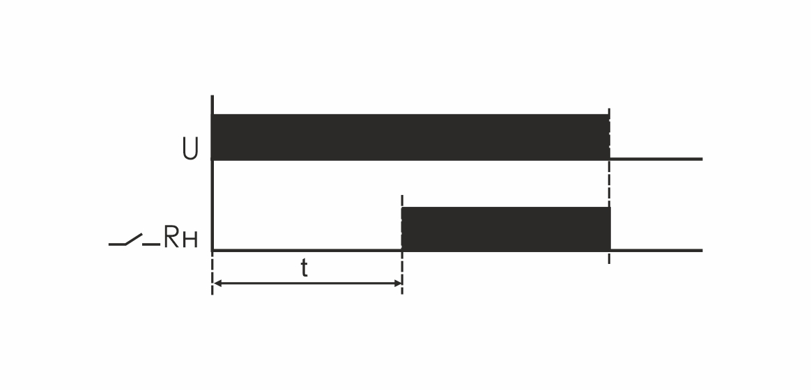Принцип работы: После включения питания и отсчёта установленной выдержки времени включается реле, замыкаются контакты 8-9, 11-12 и в таком положении остаются до отключения питания. Для повтора цикла работы необходимо отключение напряжения питания и подача его повторно.
