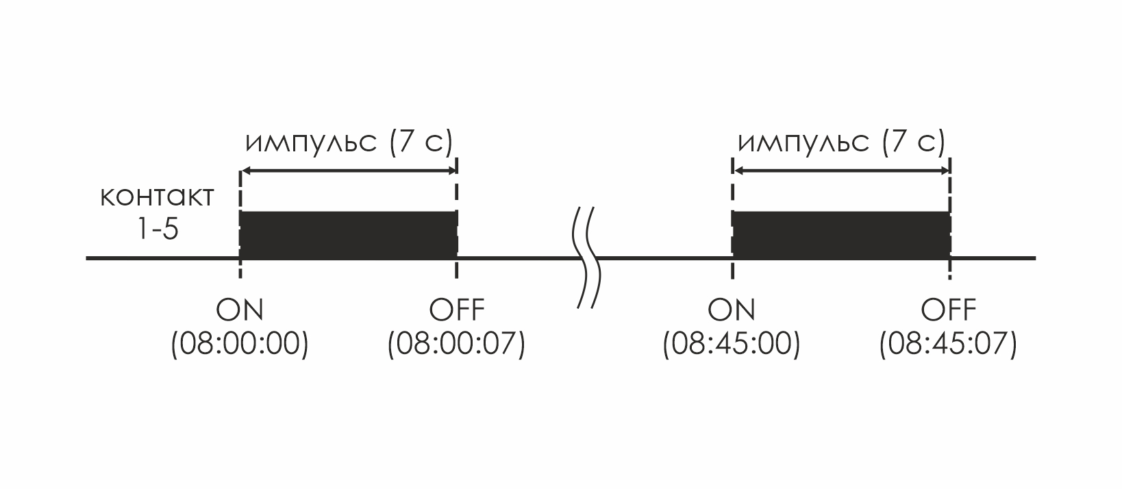 Принцип работы: Включение приборов и оборудования в запрограммированное время (часы, минуты), выключение – по окончании установленного времени (длительности импульса) в диапазоне от 1 секунды до 99 минут 59 секунд. Возможно задание 2 программ работы, например, подача звонков по расписанию в школе в обычные или предпраздничные дни (переключение осуществляется вручную).