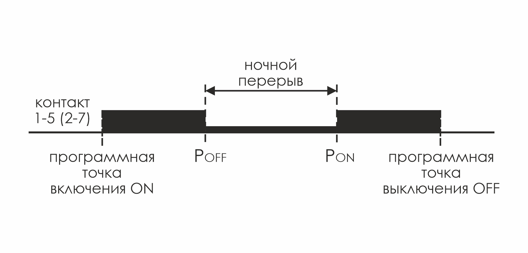 Астрономический – опираясь на информацию о текущей дате и географических координатах местности ежедневно формирует программные точки включения и отключения освещения. Точное время включения и отключения определяется на основании расчета положения солнца относительно горизонта. Между программными точками включения и отключения можно установить ночной перерыв, тем самым временно отключить нагрузку в целях энергосбережения.