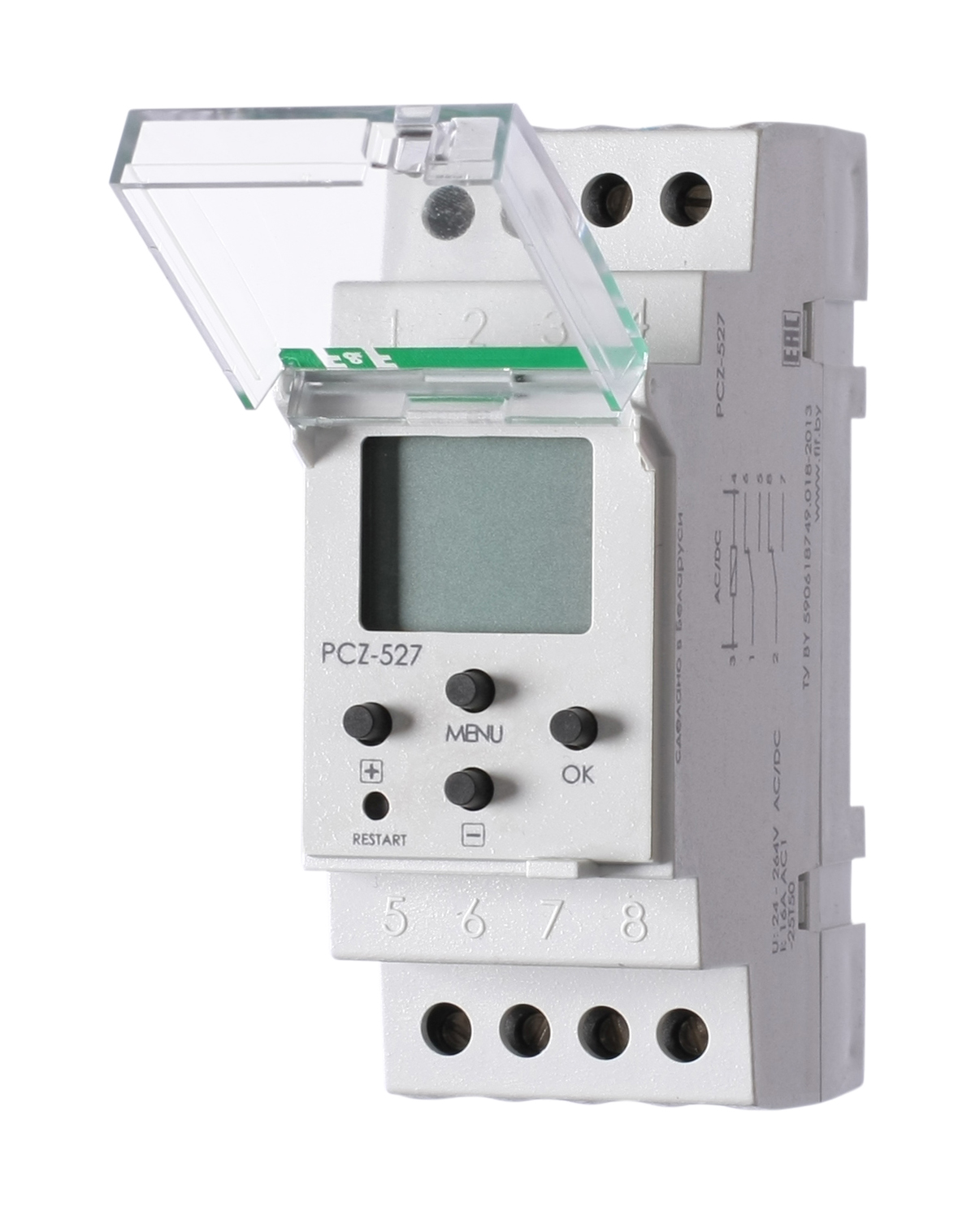 Монтаж на DIN-рейку. Для включения-отключения освещения в моменты захода и восхода солнца в зависимости от географических координат местности и времени года, с возможностью корректировки времени включения /отключения. Возможна корректировка времени включения/выключения в пределах ±199 минут.