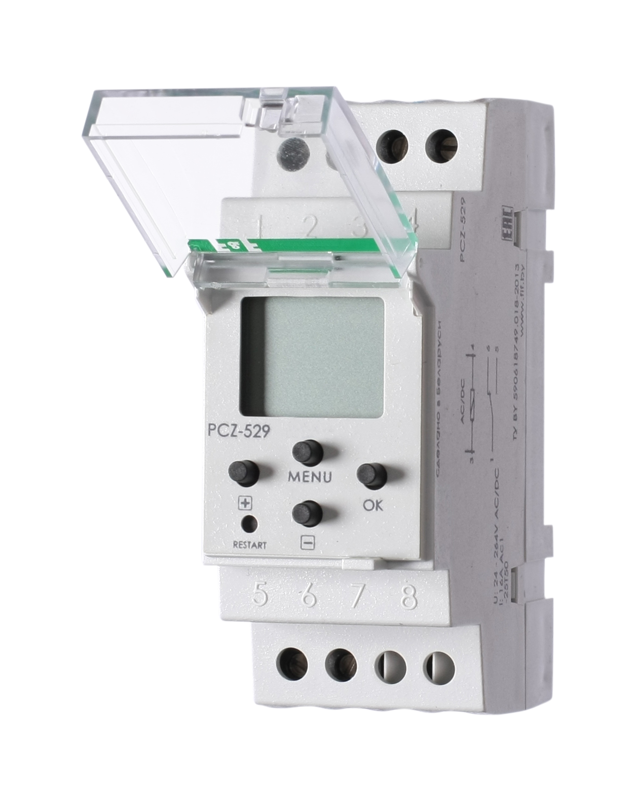 Монтаж на DIN-рейку. Для включения и выключения потребителей (нагрузки) по годовой программе.