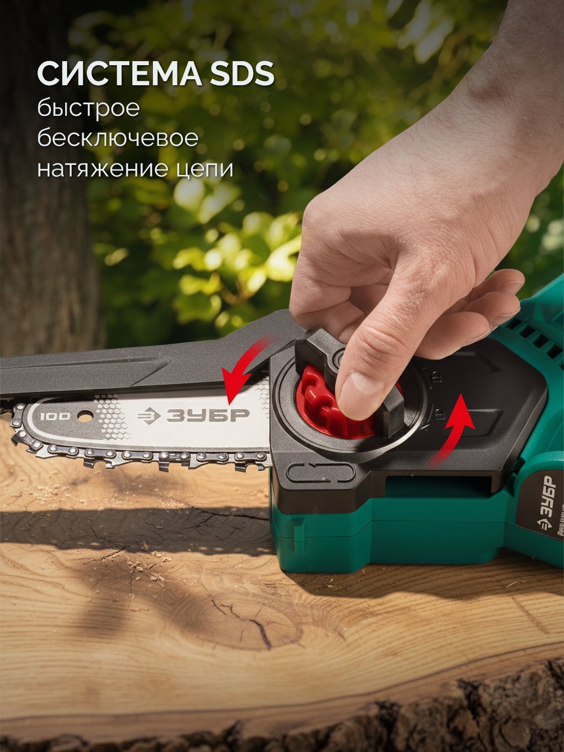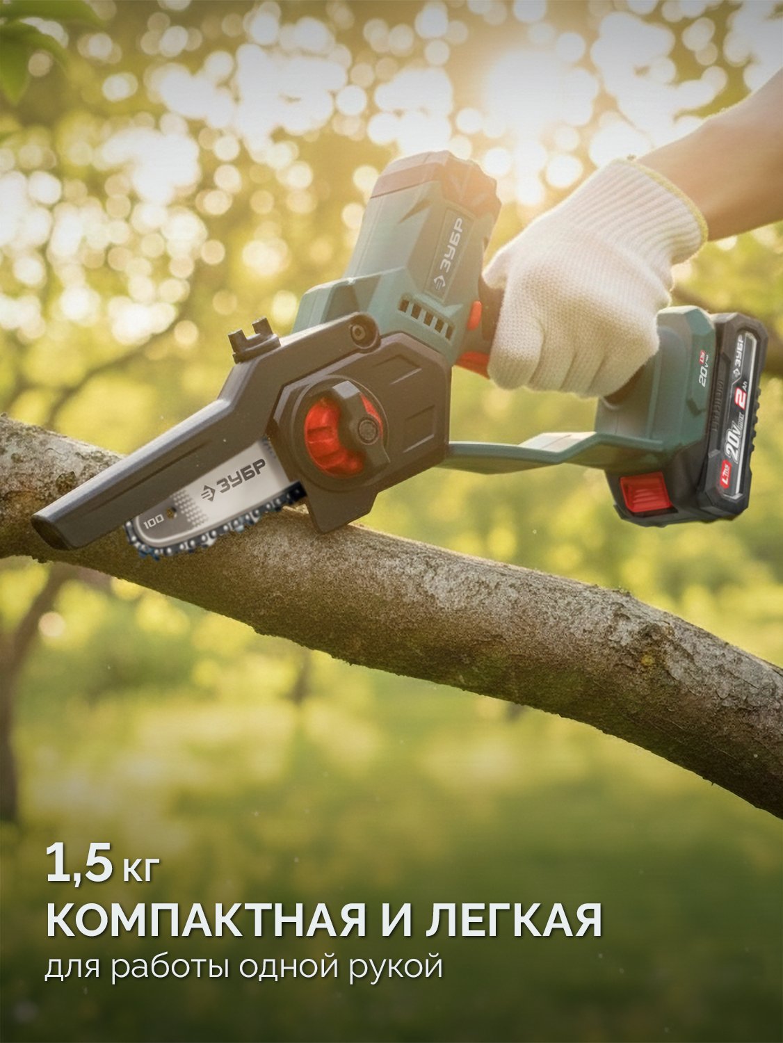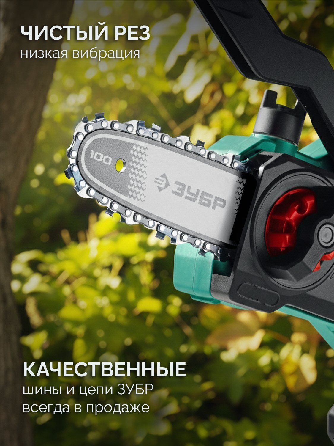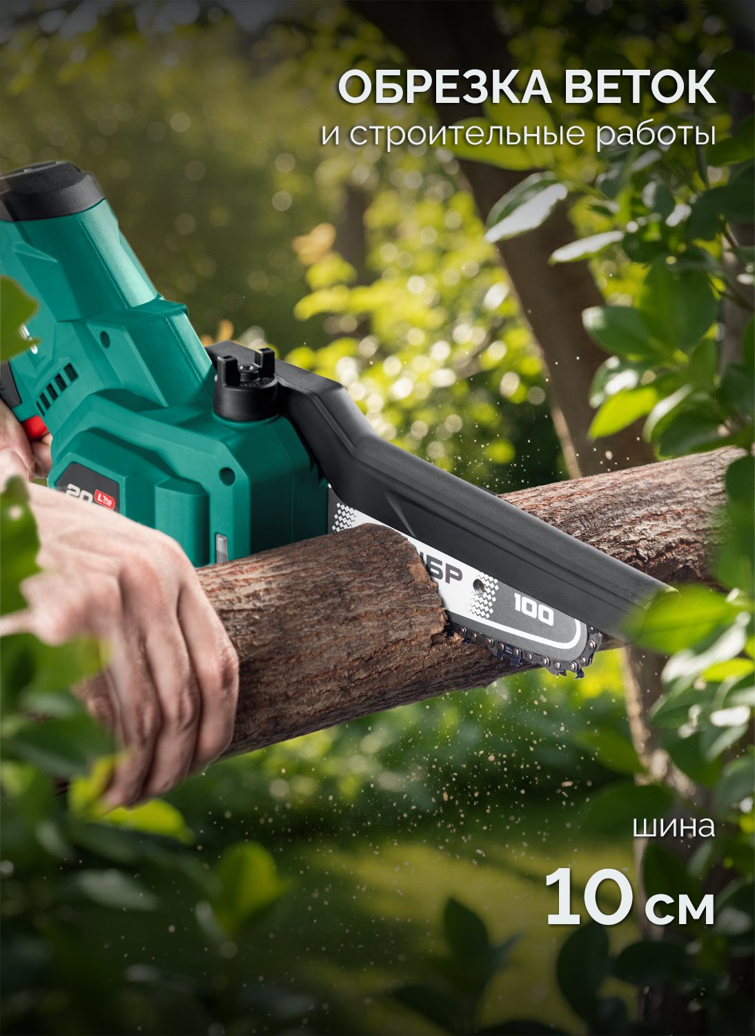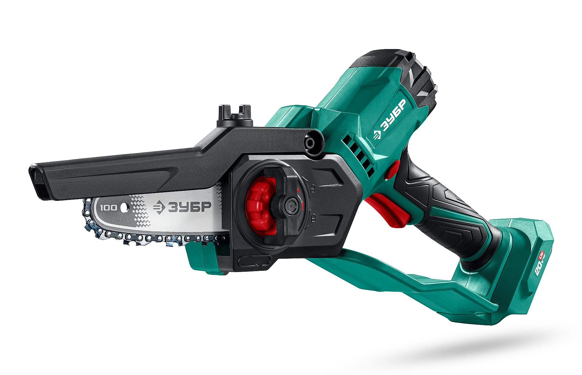 Мини-пила цепная аккумуляторная ЗУБР 20 В, 100 мм шина, без АКБ (LMS) ПЦА-2010 — легкая аккумуляторная мини-пила ЗУБР создана для работы в саду, обрезки веток и простых строительных работ.