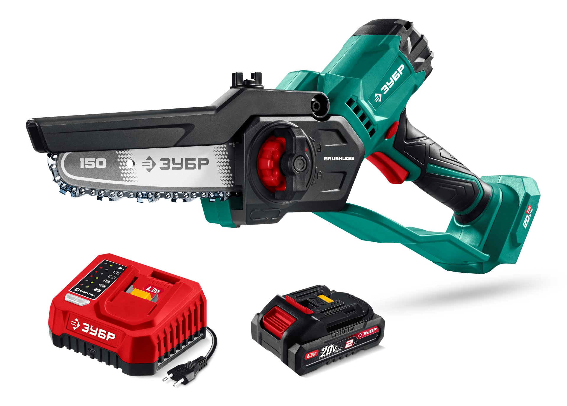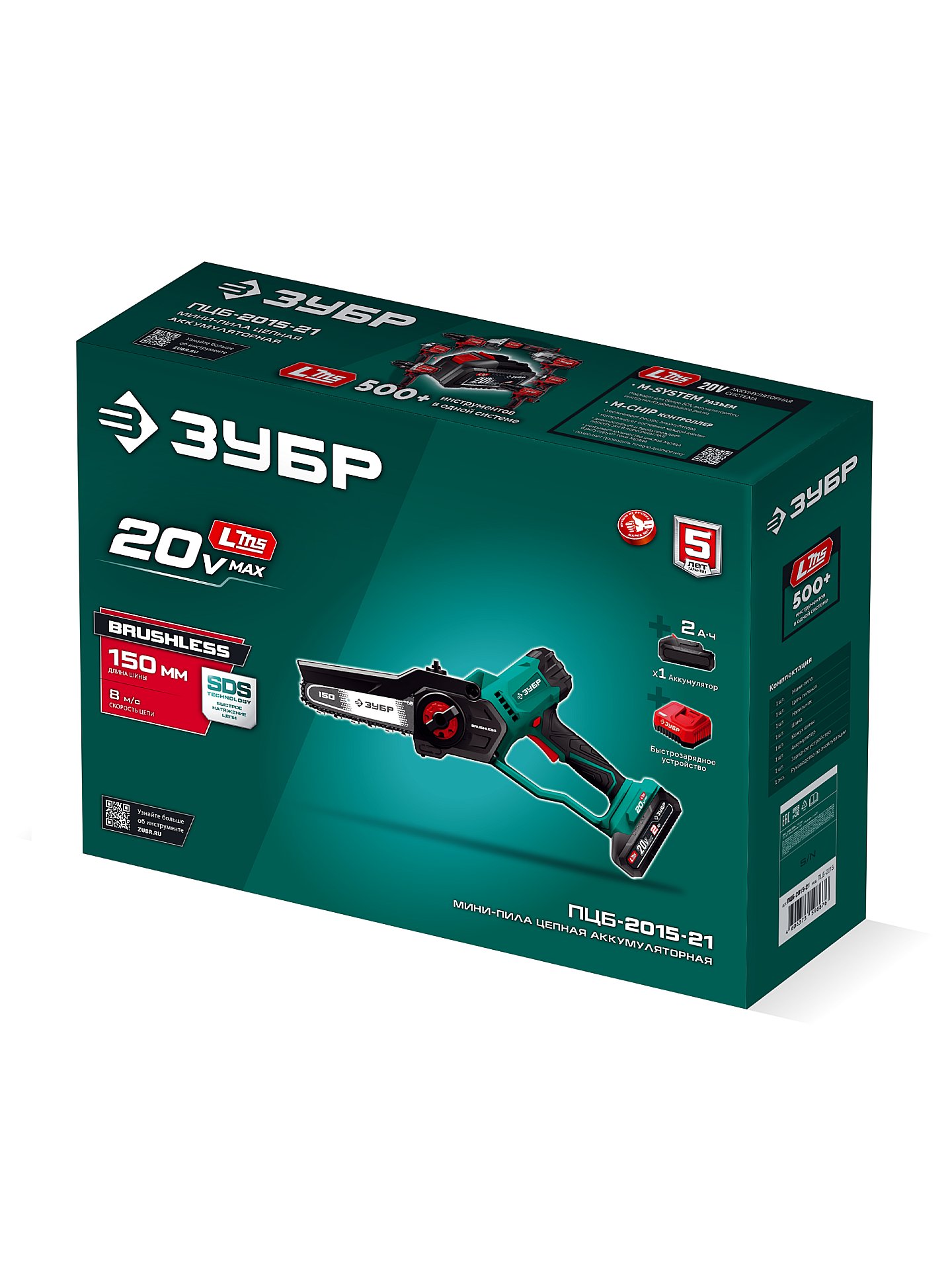 Мини-пила цепная аккумуляторная ЗУБР 20 В, 150 мм шина, 1 АКБ LMS (2 Ач) ПЦБ-2015-21 — аккумуляторная мини-пила ЗУБР создана для работы в саду, обрезки веток и простых строительных работ.