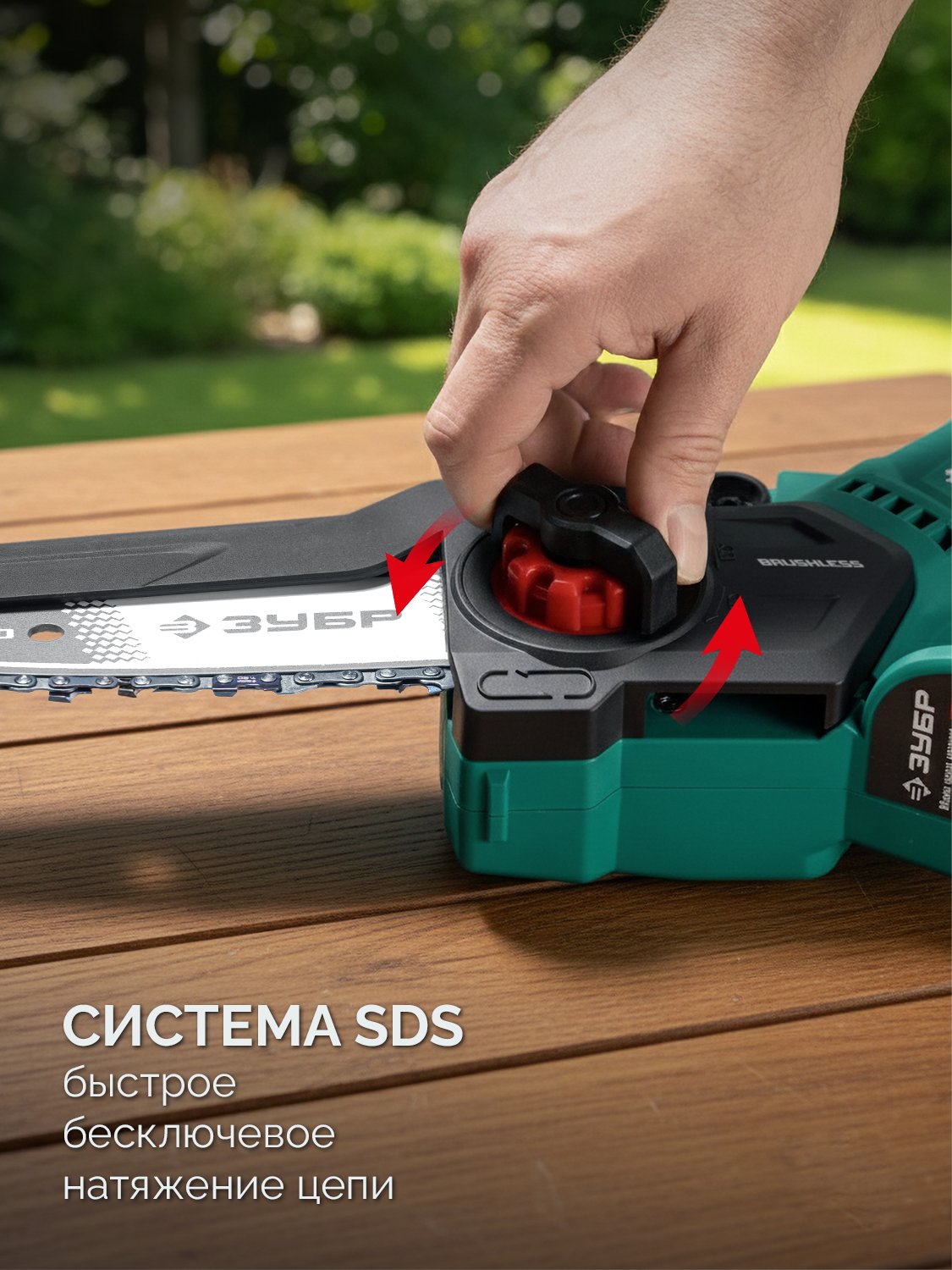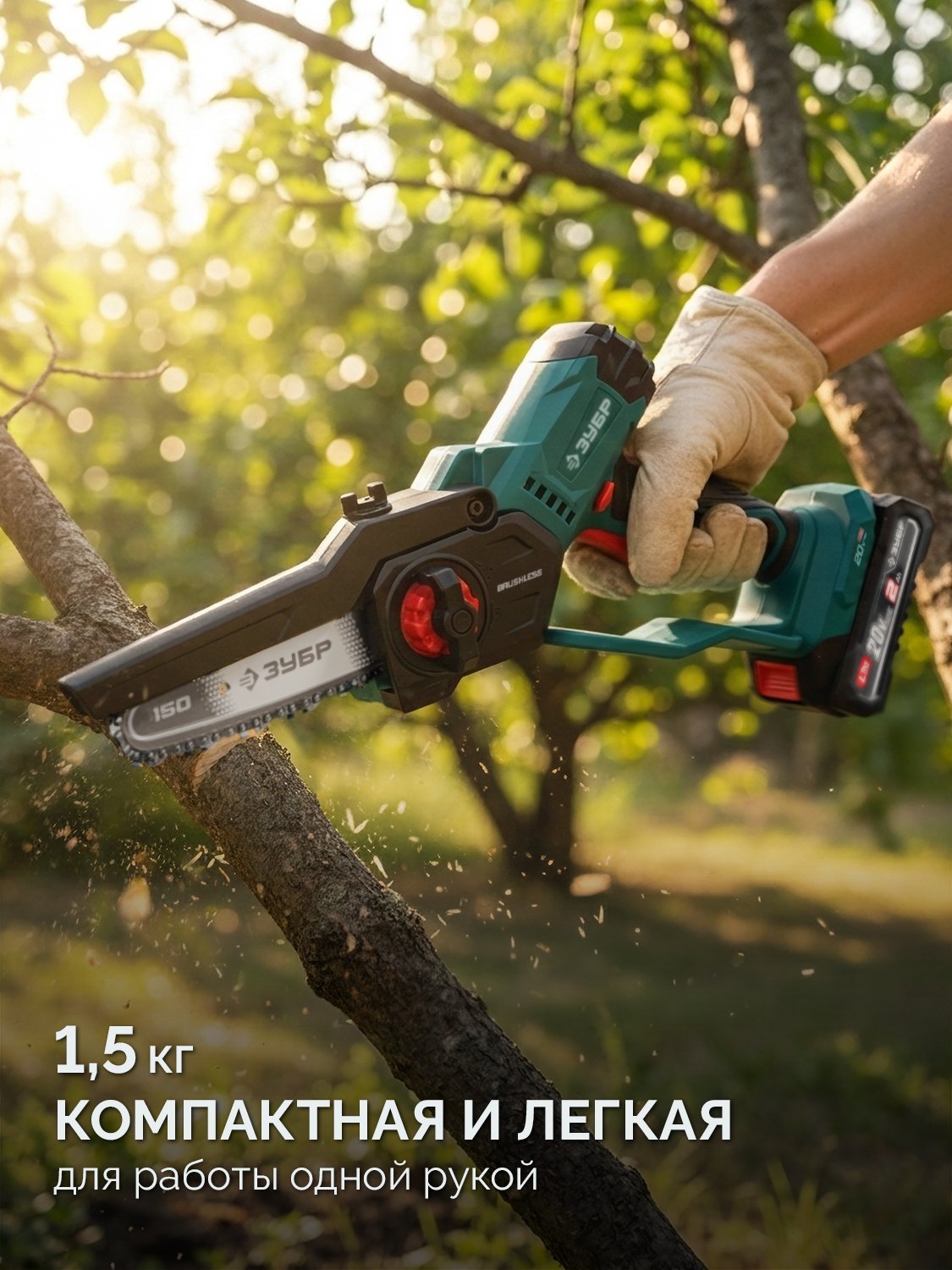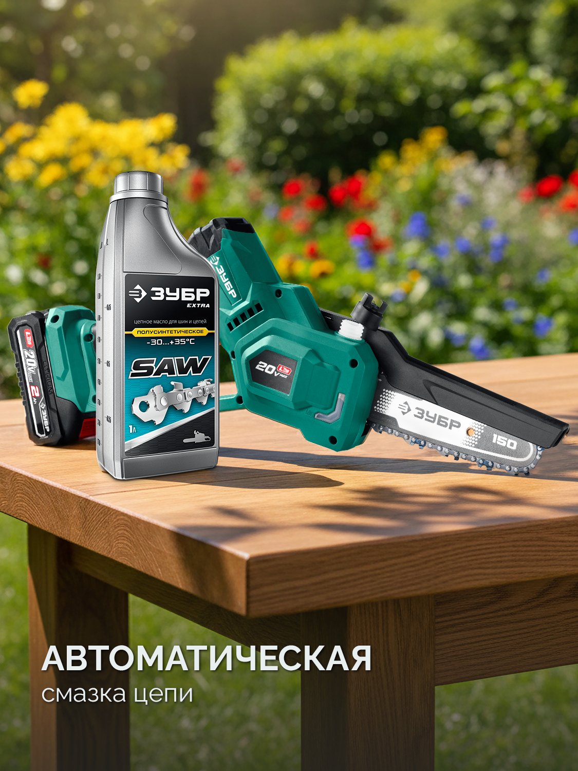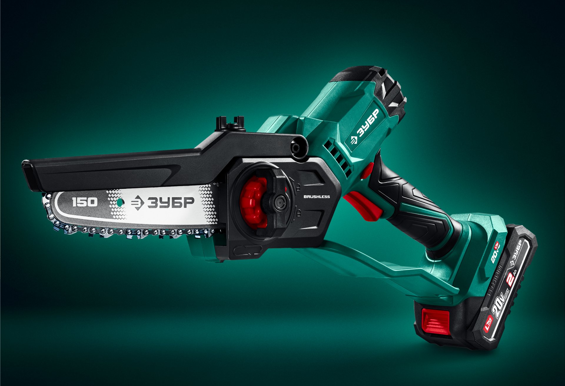 Мини-пила цепная аккумуляторная ЗУБР 20 В, 150 мм шина, без АКБ (LMS) ПЦБ-2015 — создана для работы в саду, обрезки веток и простых строительных работ.