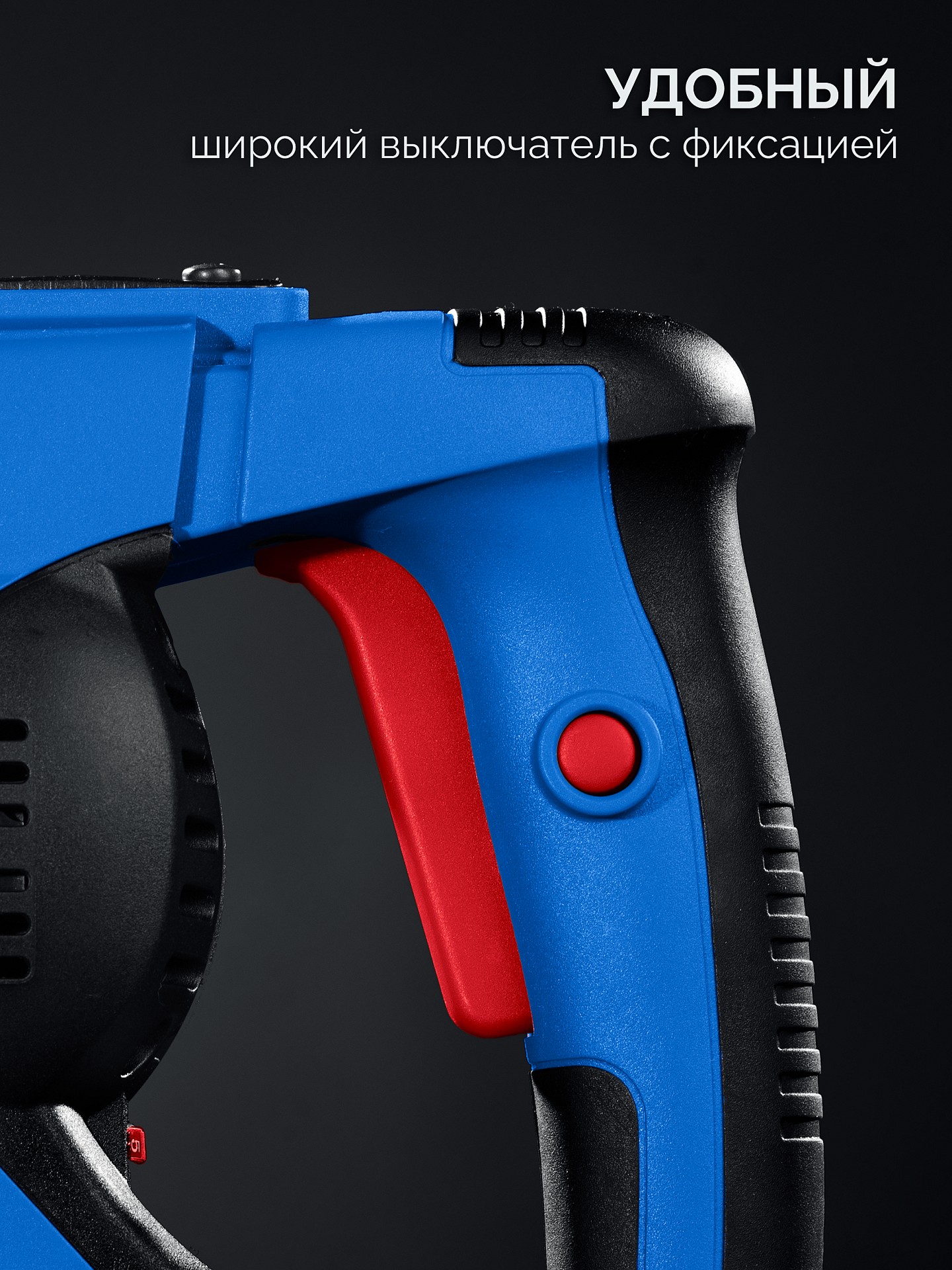 - Регулируемая на 360° и по углу наклона дополнительная D-образная рукоятка обеспечивает удобный и надежный хват в любом положении изделия