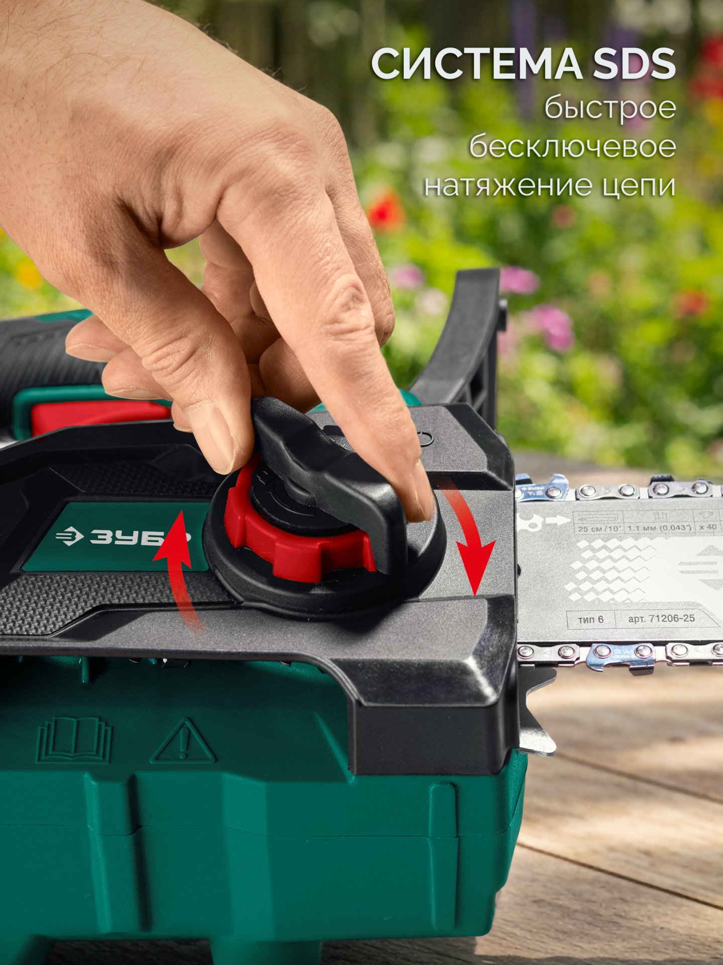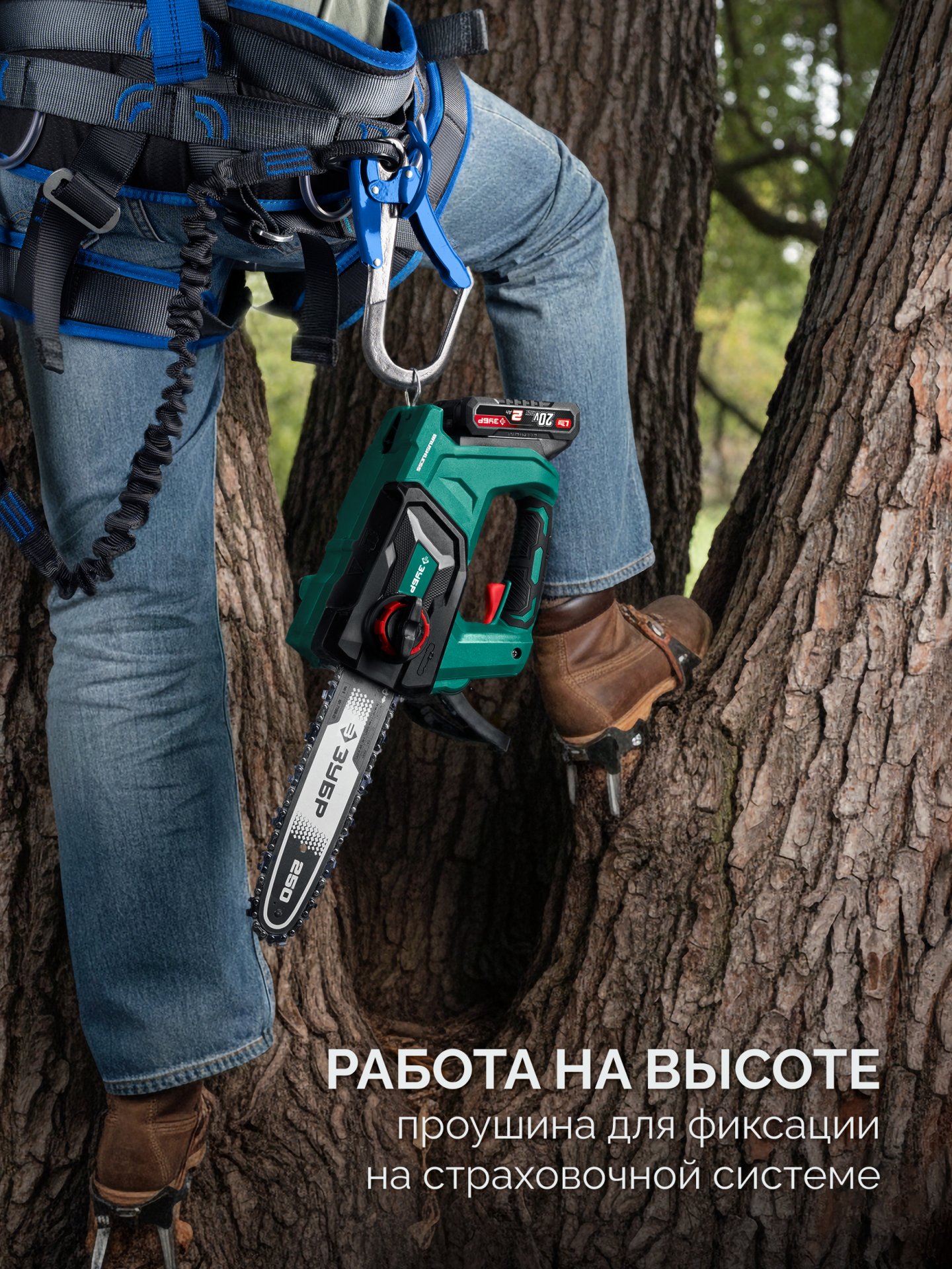 Компактная аккумуляторная цепная пила ЗУБР — идеальный инструмент для садоводов и строителей. Она отлично подходит для обрезки веток, пиления небольших деревьев и выполнения различных строительных и ремонтных работ. Благодаря мощному BRUSHLESS двигателю и качественной цепи, вы сможете быстро и эффективно справляться с любыми задачами. Особое внимание стоит уделить ее компактным размерам и удобному крючку, что делает пилу незаменимой для высотных работ. Легкость и маневренность инструмента позволяют легко добраться до труднодоступных мест, а крючок обеспечивает надежное крепление, освобождая ваши руки для других задач.