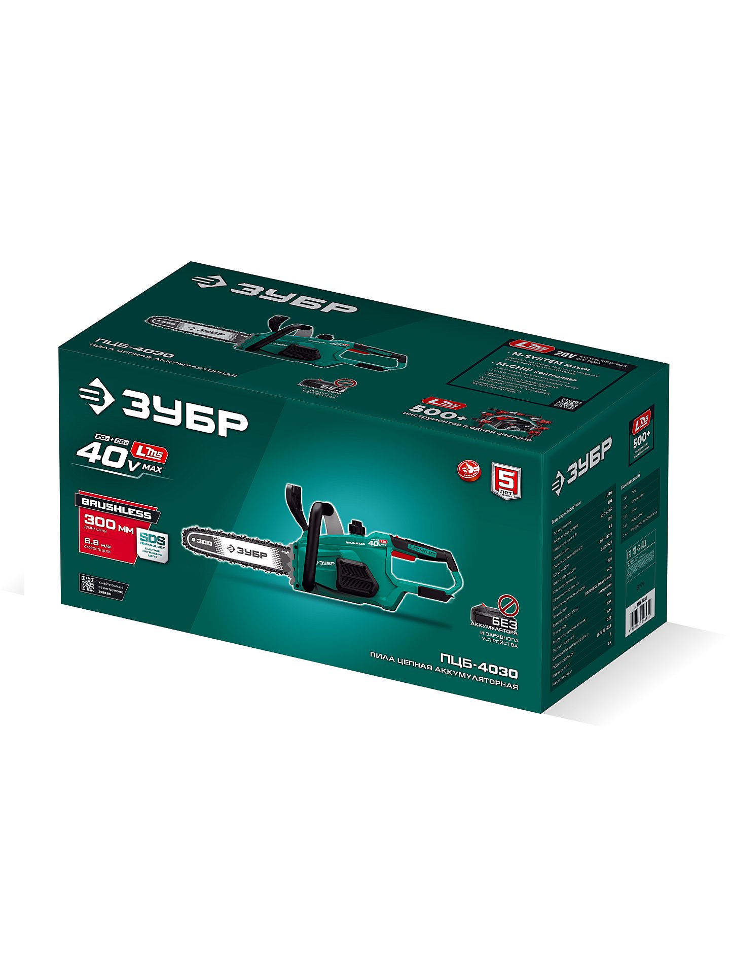 Мощная аккумуляторная цепная пила ЗУБР с напряжением 40В создана для работы в саду, обрезки веток, пиления небольших деревьев, а так же проведения различных строительных и ремонтных работ. Мощный BRUSHLESS двигатель и качественная цепь позволят быстро выполнить работу