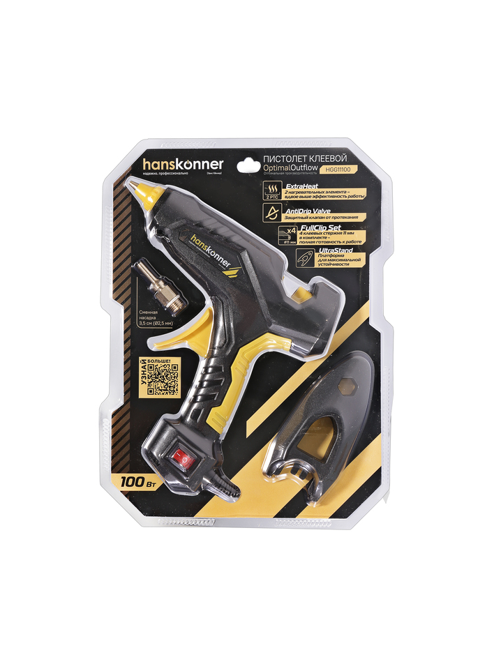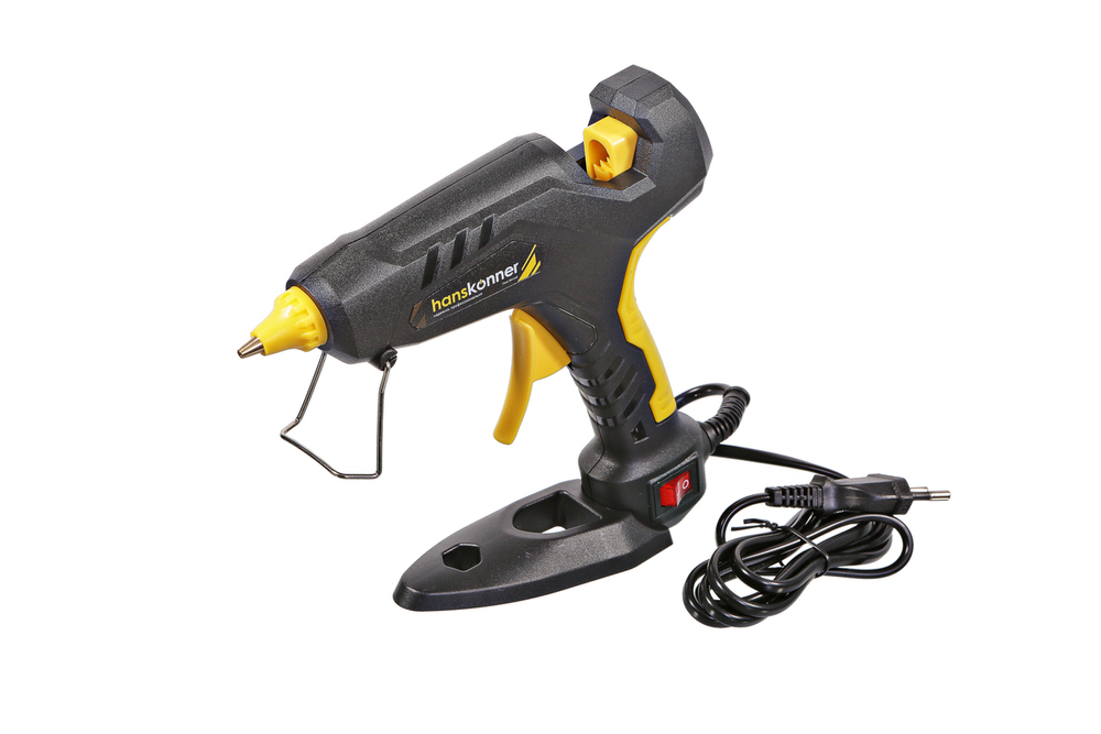 Пистолет клеевой Hanskonner 100 Вт является незаменимым инструментом для различных видов работы, таких как ремонт, моделирование, декорирование и многих других. Он используется для соединения нескольких частей из дерева, металла, пластика, стекла, керамики, бумаги и резини с помощью расплавленного клея.