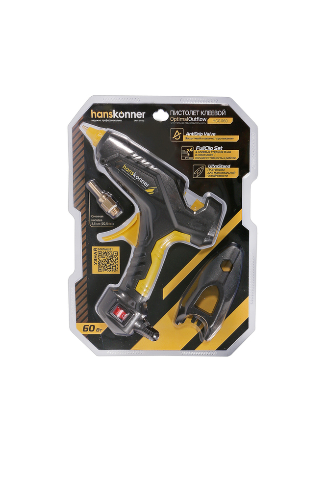 Пистолет клеевой Hanskonner 60 Вт является незаменимым инструментом для различных видов работы, таких как ремонт, моделирование, декорирование и многих других. Он используется для соединения нескольких частей из дерева, металла, пластика, стекла, керамики, бумаги и резини с помощью расплавленного клея.