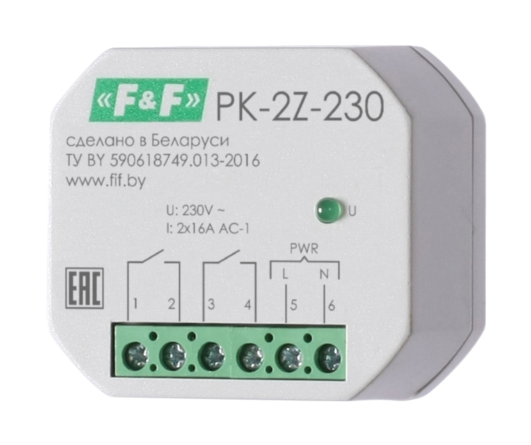 Особенности: напряжение питания - 100...265 В AC/DC; максимальный ток нагрузки - 2x16 А; контакт - 2NO.