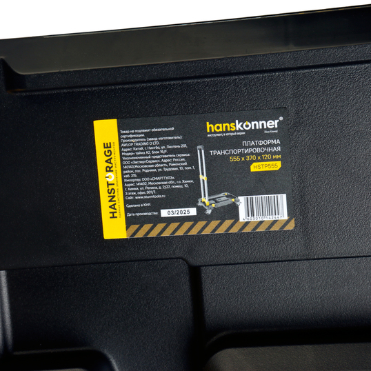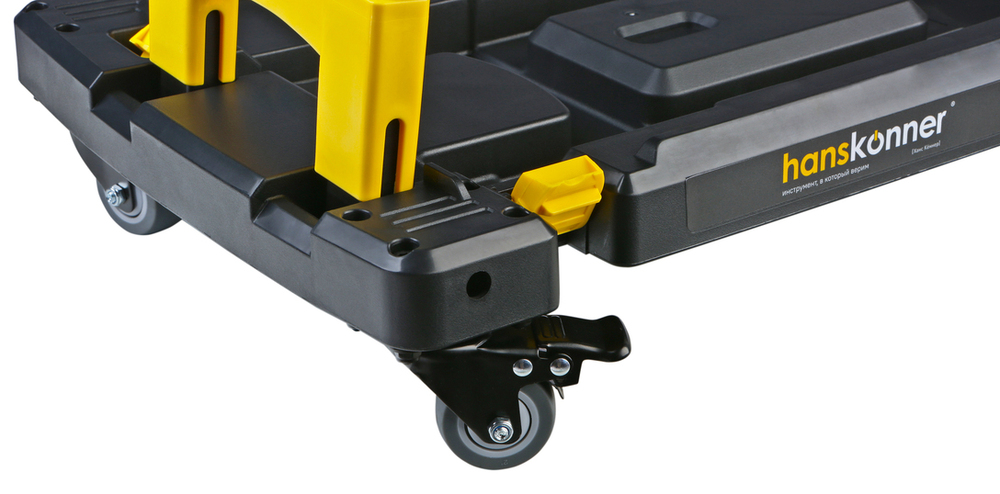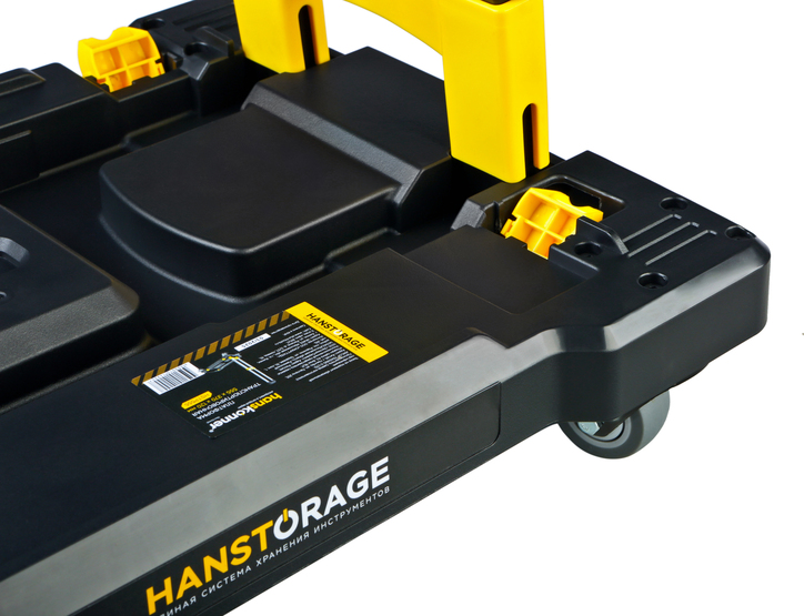 Платформа транспортировочная единой системы хранения Hanstorage представляет собой устройство для размещения кейсов системы хранения и их перемещения (транспортировки). Данная платформа снабжена складной телескопической рукояткой общей высотой 775мм для удобства пользователя. Допусимая нагрузка на платформу -100кг