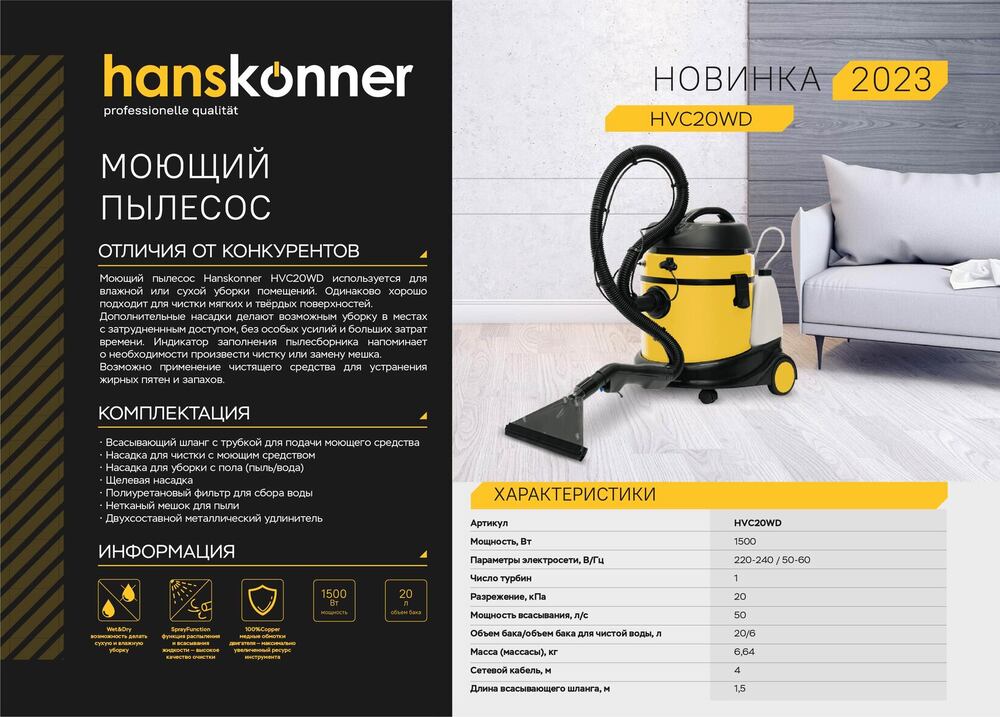 Моющий пылесос HVC20WD используется для влажной и сухой уборки помещений. Одинаково хорошо подходит для чистки мягких и твердых поверхностей. Дополнительные насадки делают возможным уборку в местах с затруднительным доступом, без особых усилий и больших затрат времени. Возможность применения чистящего средства для устранения жирных пятен и запахов. Работает по принципу распыления-экстракции. Благодаря дополнительным принадлежностям модель может использоваться как для сухой, так и для влажной уборки.