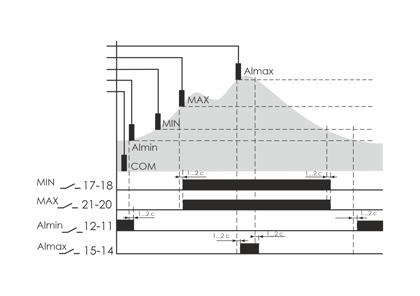 Монтаж на DIN-рейку. Предназначено для контроля и поддержания заданного уровня токопроводящих жидкостей в резервуарах, бассейнах, водонапорных башнях и т.п. и управления электродвигателями насосных установок. При включении питания реле входит в рабочий режим через 2 секунды. Клеммы подключения датчиков гальванически изолированы от цепей питания. В зависимости от жидкости, в которую помещается датчик, изменяется чувствительность входных каскадов автомата. Для нормальной работы, после монтажа, следует отрегулировать чувствительность при помощи регуляторов на лицевой панели («100» - увеличение, «1» - уменьшение). Возможно удлинение провода подключения датчиков до 50 метров.