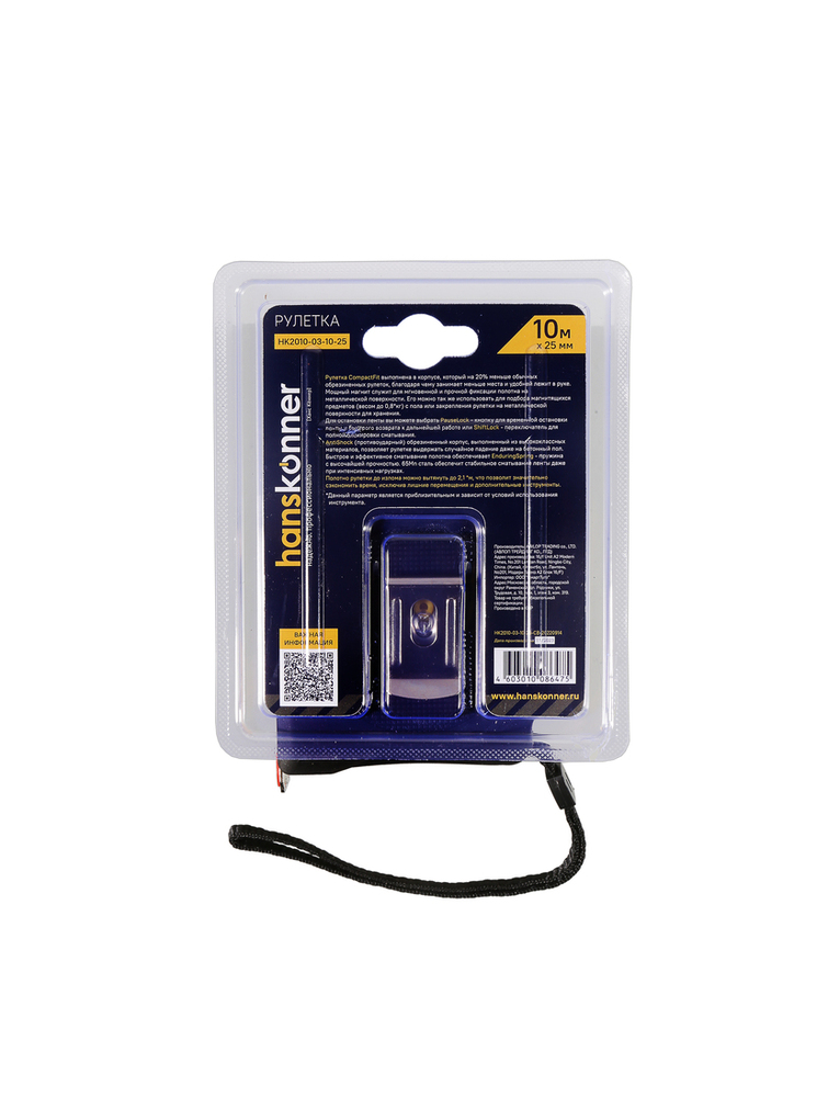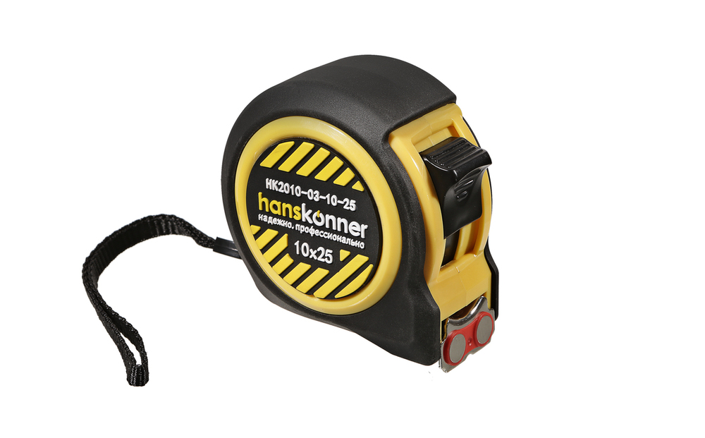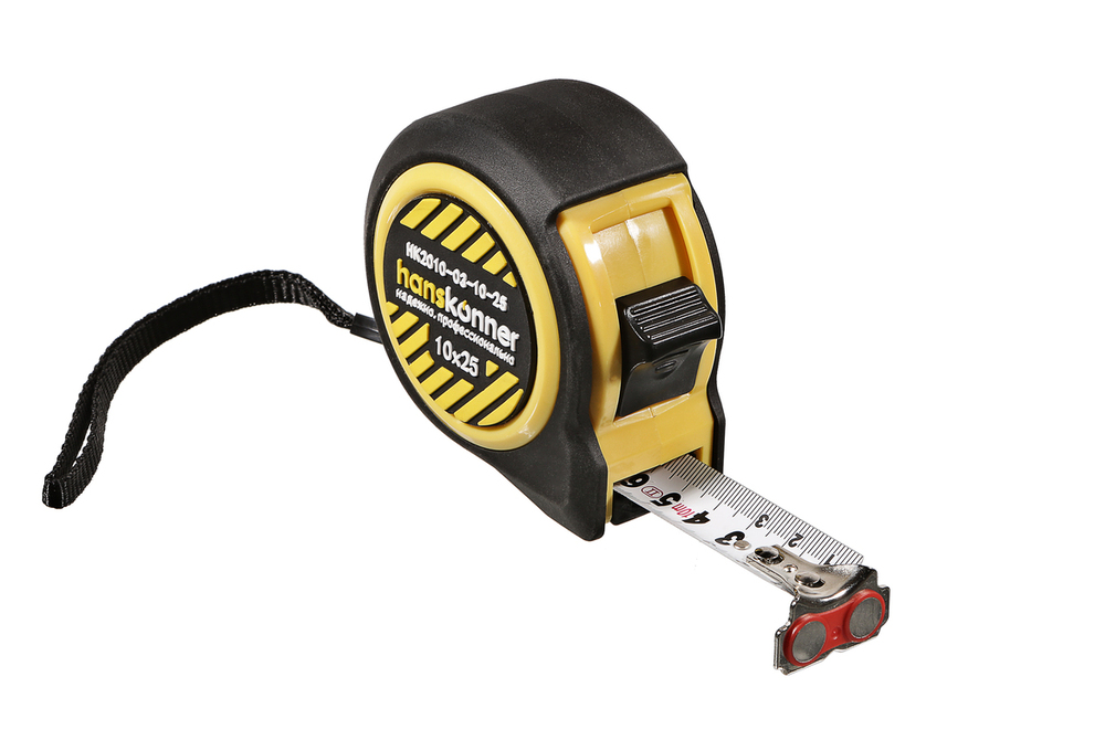 Рулетка 10x25мм, 2 стопа, компактный корпус, мощный магнит, Hanskonner HK2010-03-10-25 — компактная модель, которая может быть всегда под рукой, для надежных результатов измерения.