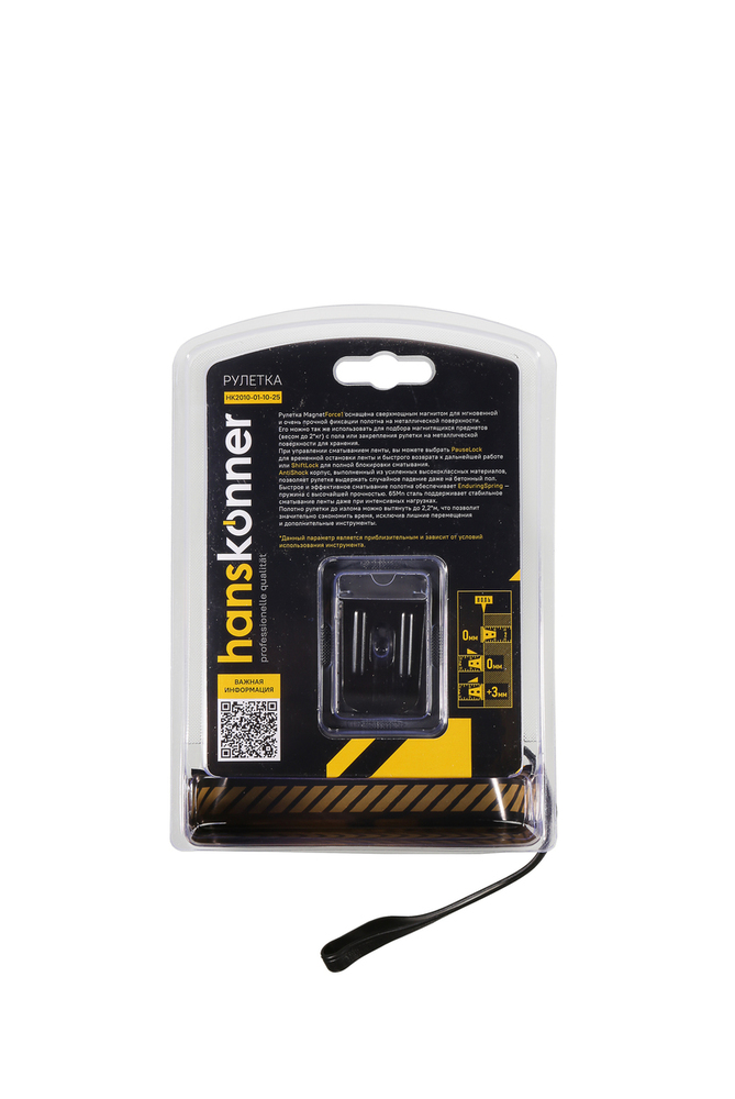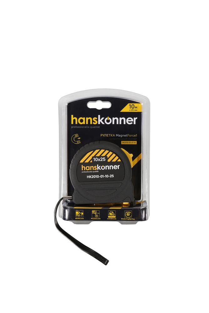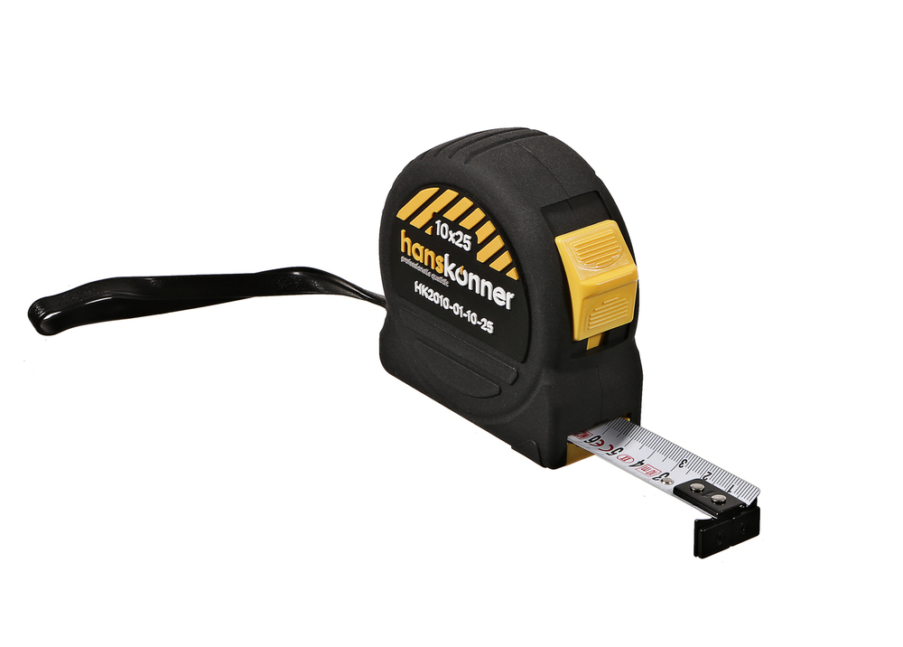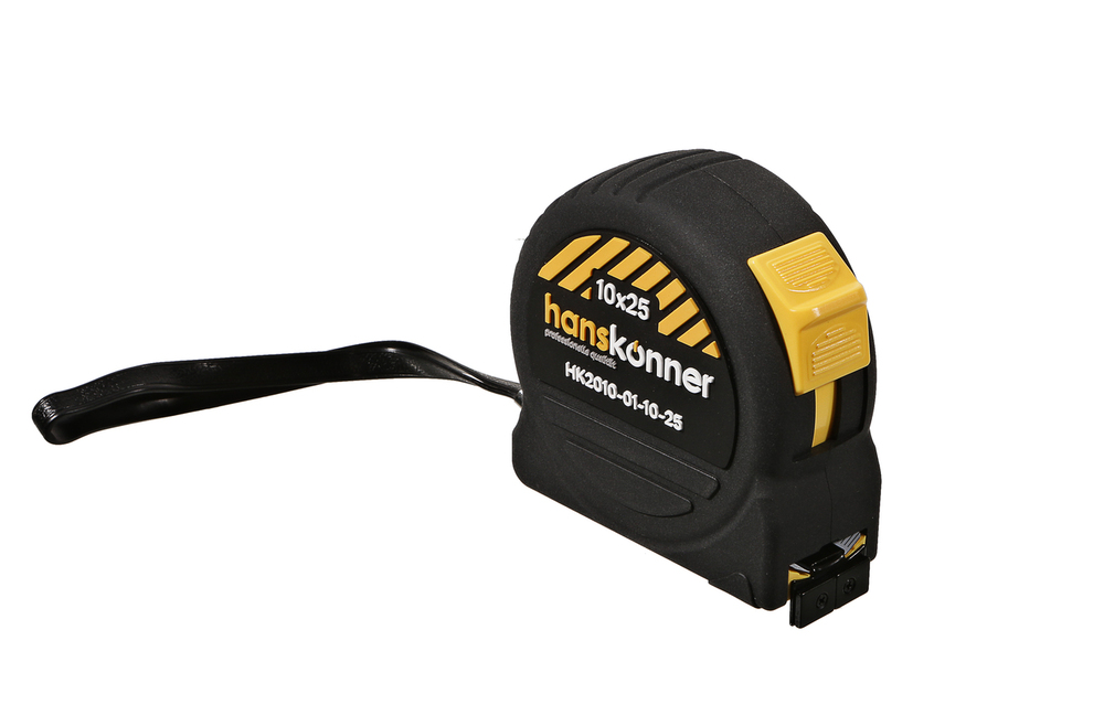 Рулетка 10x25мм, 2 стопа, корпус SoftTouch, супермощный магнит, Hanskonner HK2010-01-10-25 — практичная модель оптимальной компоновки с увеличенной дальностью действия для точных измерений.