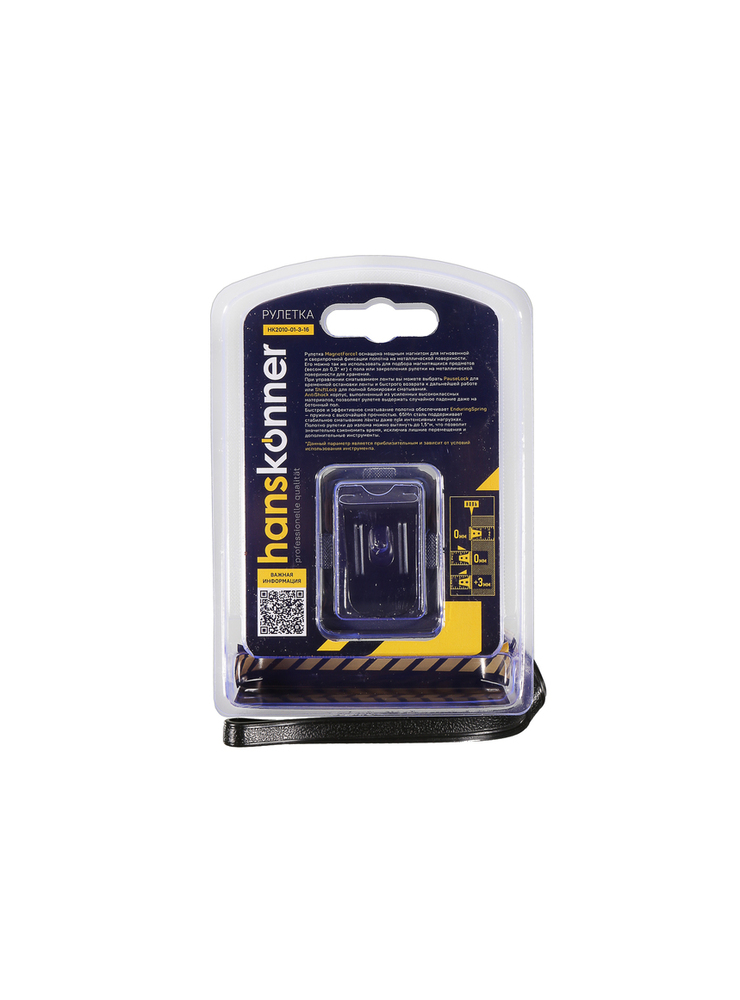 Рулетка 3x16мм, 2 стопа, корпус SoftTouch, супермощный магнит, Hanskonner HK2010-01-3-16 — компактная модель «на все случаи», которая может быть всегда под рукой, для надежных результатов измерения.